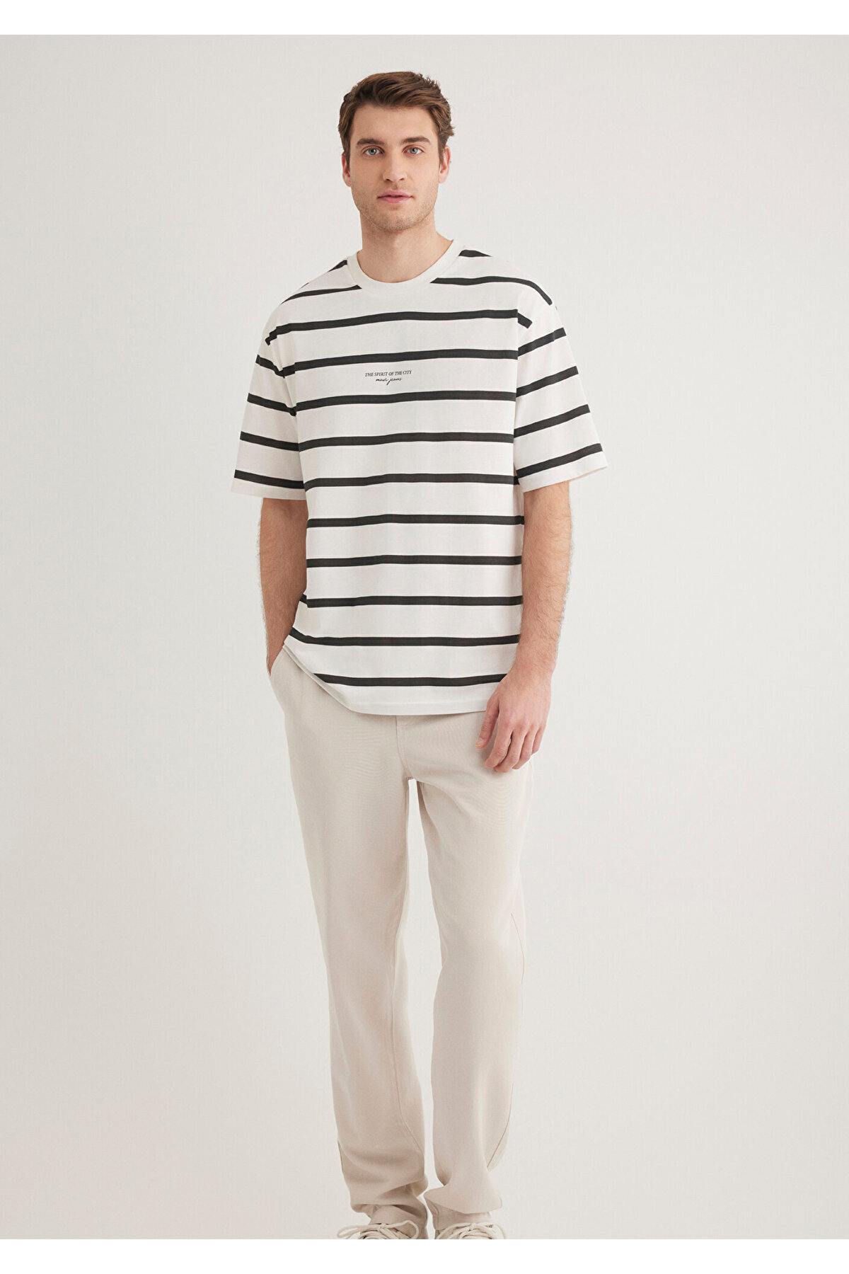 ماوی تی شرت سفید چاپ شده با تناسب گشاد / برش راحت گشاد 0612345-80194