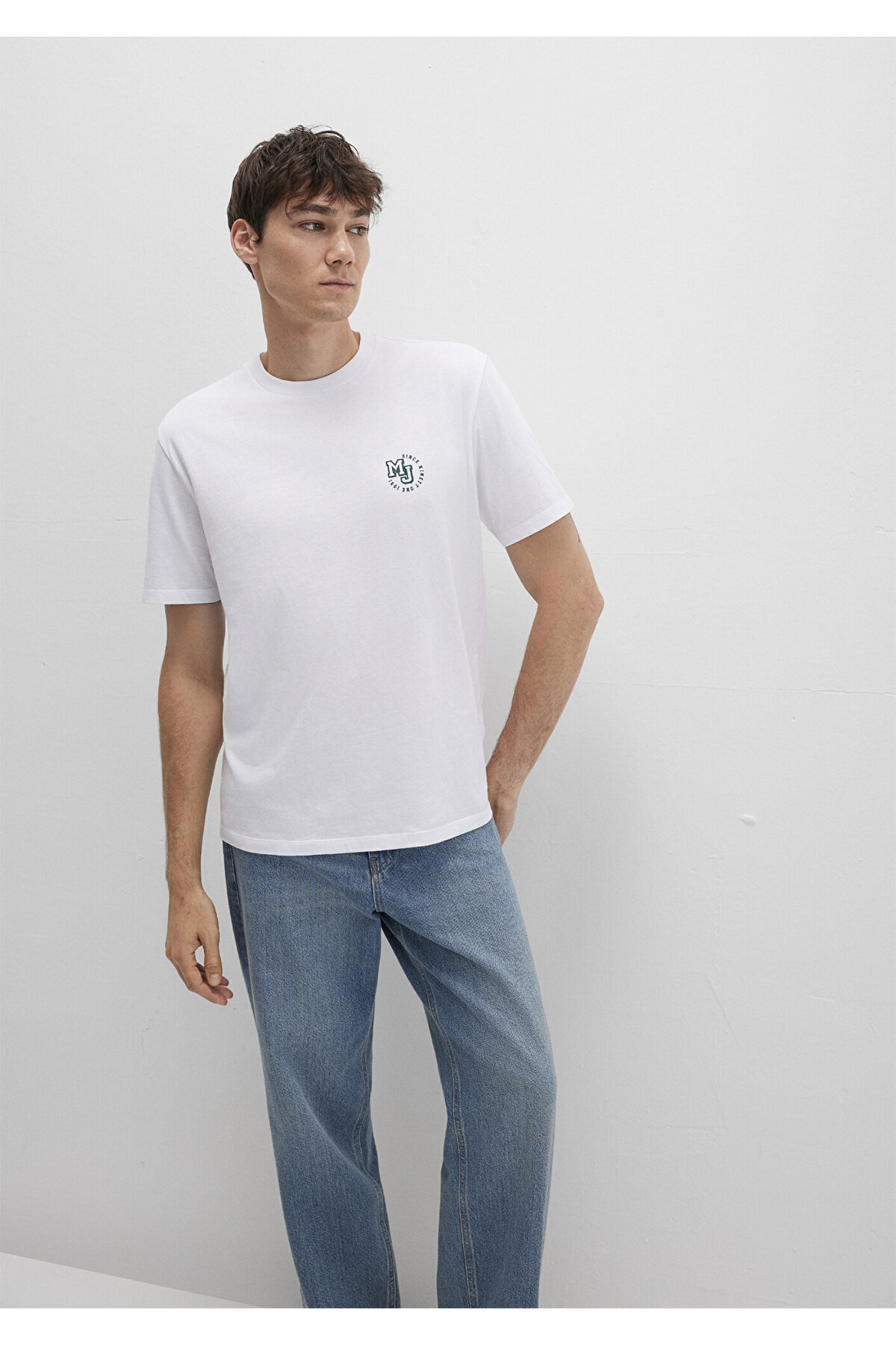ماوی تی شرت سفید چاپ شده با لوگوی MJ گشاد / برش راحت گشاد 0612839-620