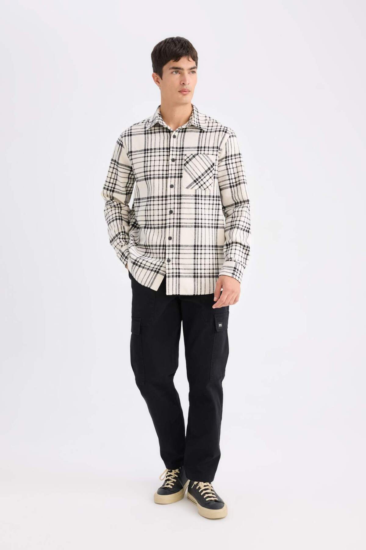 دفاکتو پیراهن آستین بلند جیبی فلانل شطرنجی منظم D3499AX24WN