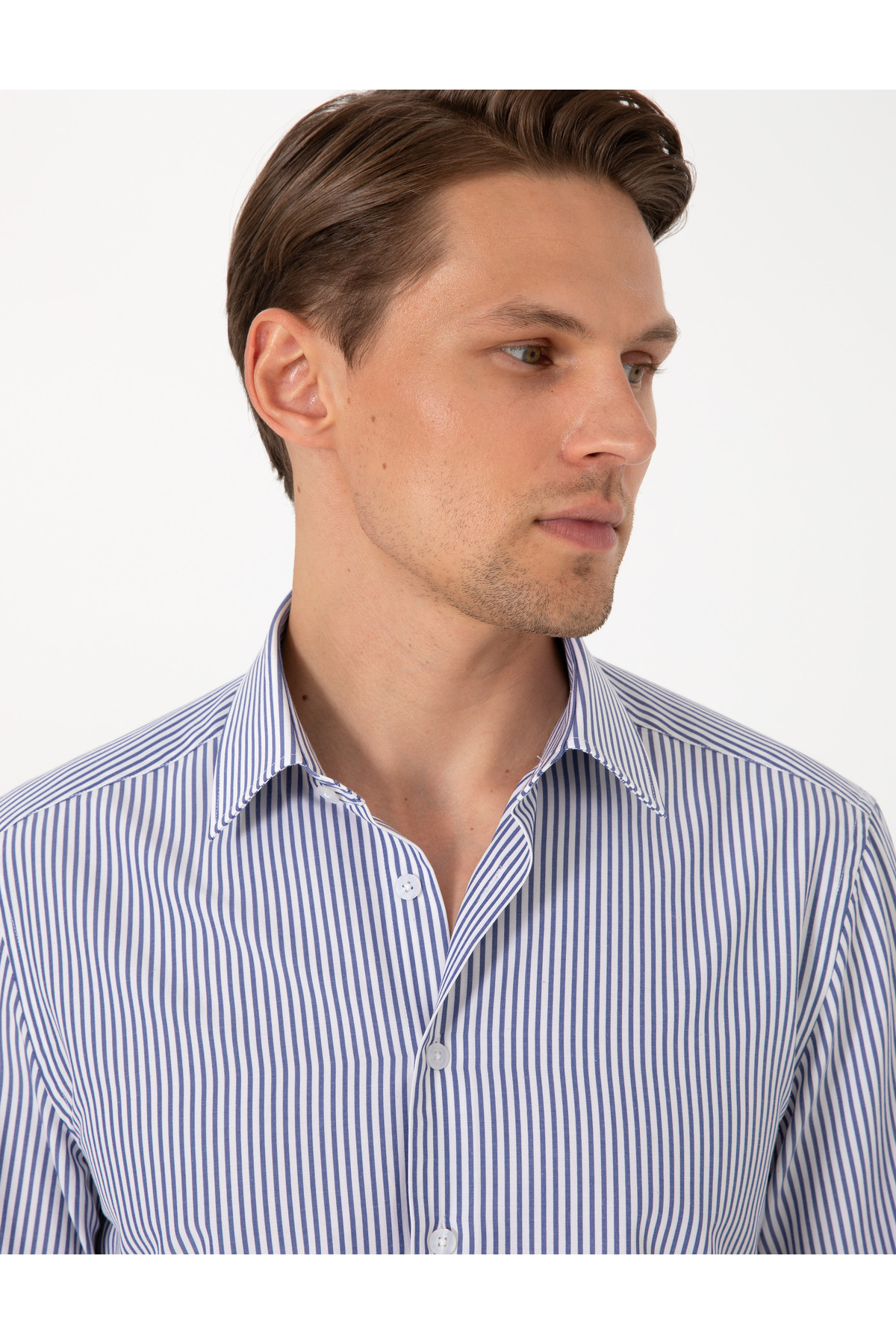 پیر کاردین پیراهن آستین بلند راه راه آبی باریک 50307142-VR036