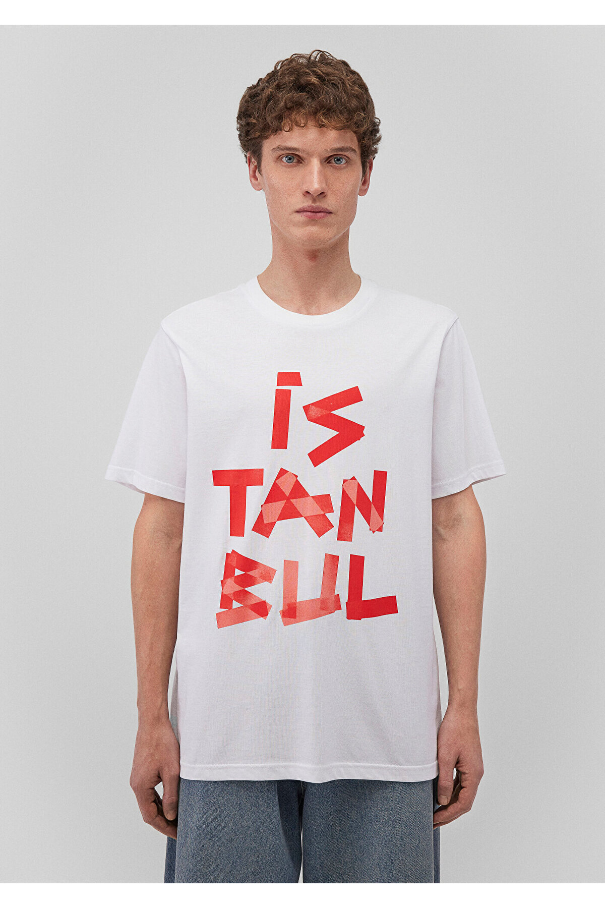 ماوی تی شرت استانبولی سفید با تناسب معمولی / برش معمولی 0612454-620