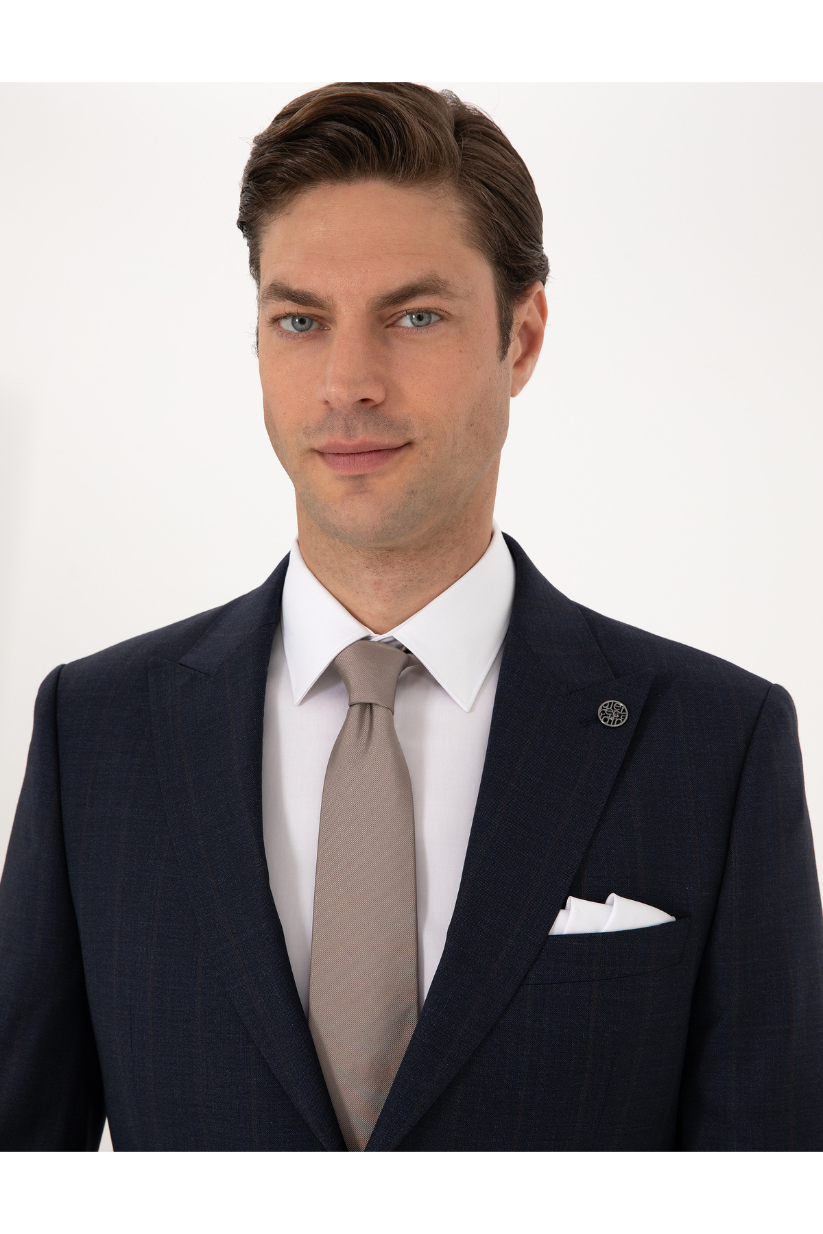 پیر کاردین کت و شلوار شطرنجی 100% پشمی باریک آبی ناوی 50311210-VR033