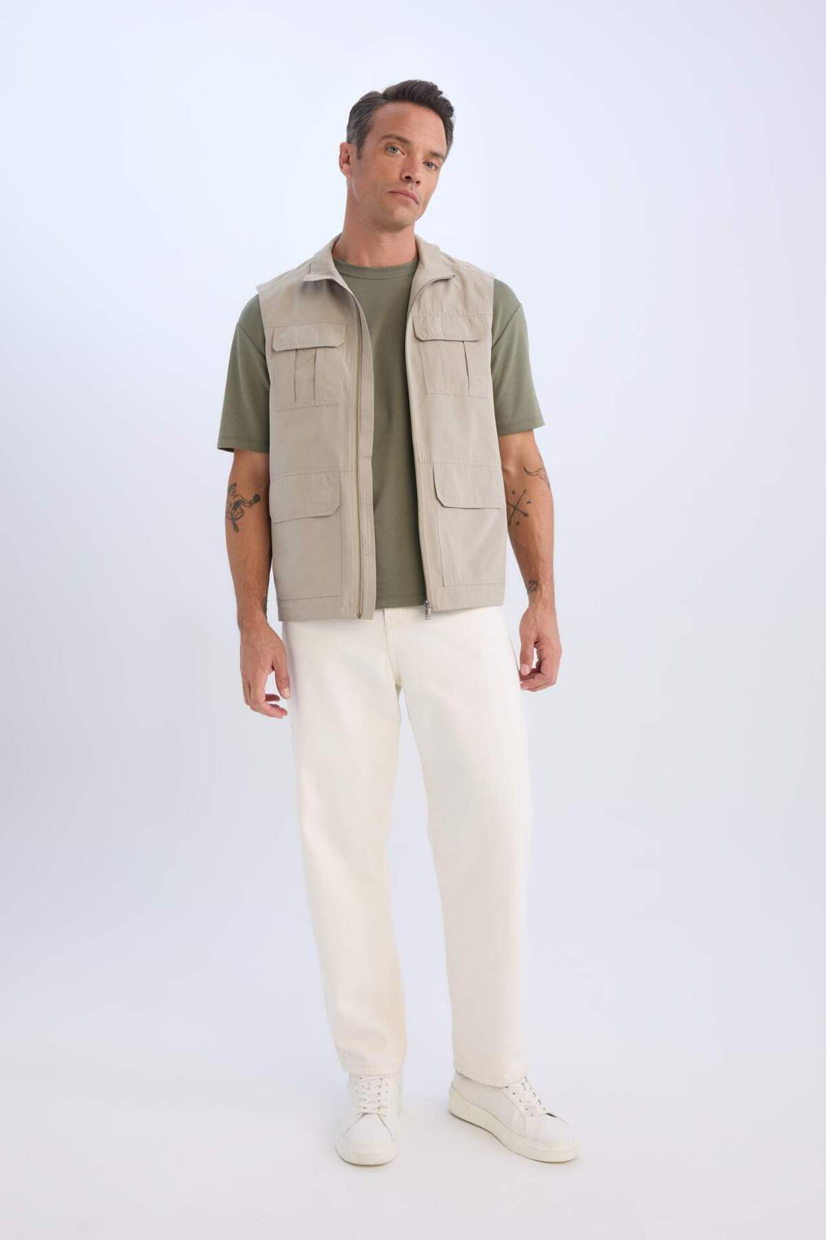 دفاکتو جلیقه جیبی زیپ دار داخلی با یقه ایستاده با تناسب رگولار E8292AX25AU