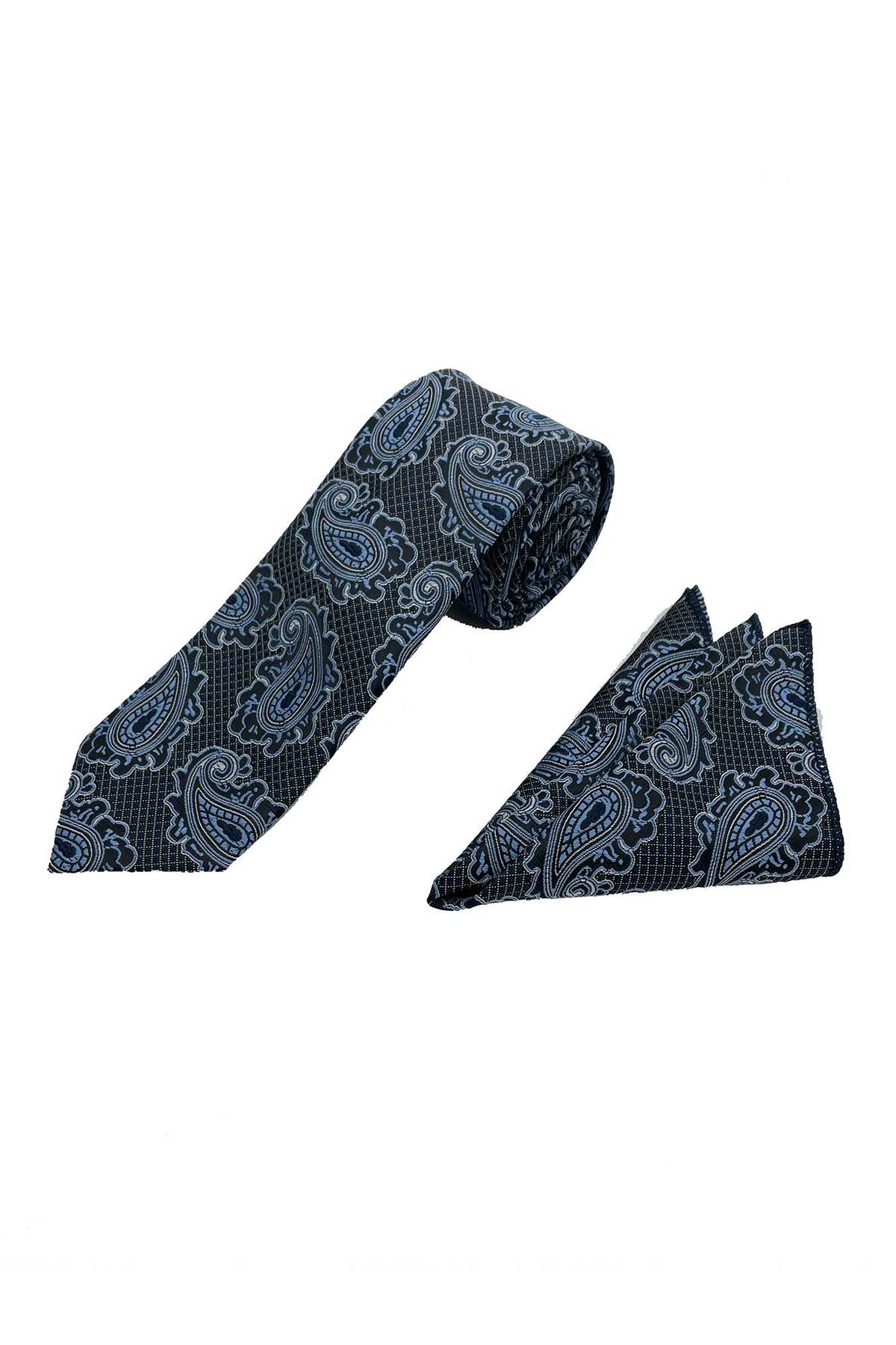 ست کراوات و دستمال طرح پیزلی آبی ناوی مردانه طرح شال | Brianze B00291