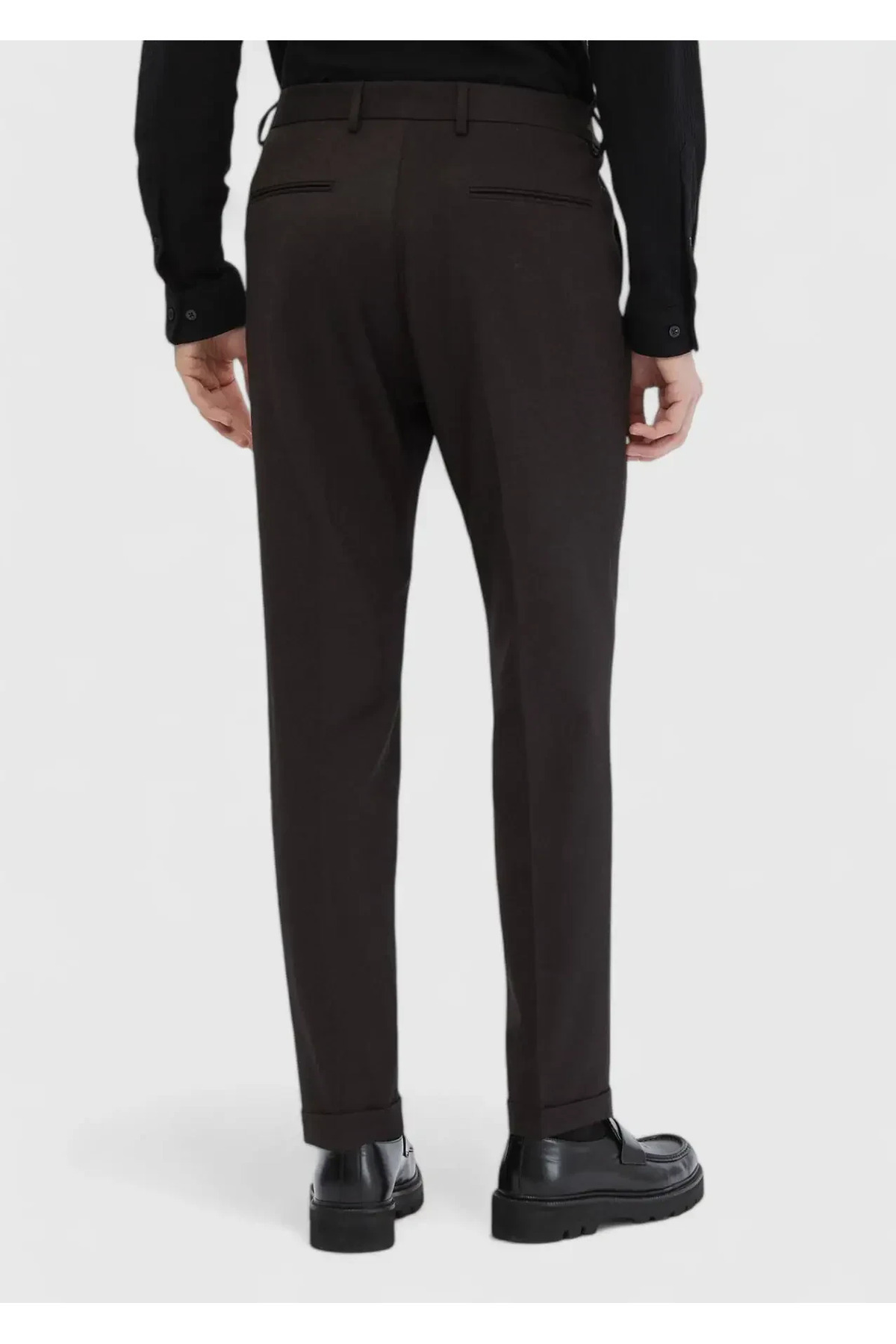 رمزی شلوار ترکیبی پشمی معمولی با بافت ساده قهوه ای