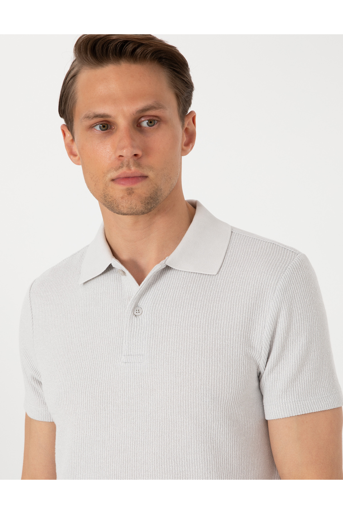 پیر کاردین تی شرت یقه پولو بافتنی بافت باریک خاکستری 50310171-VR024