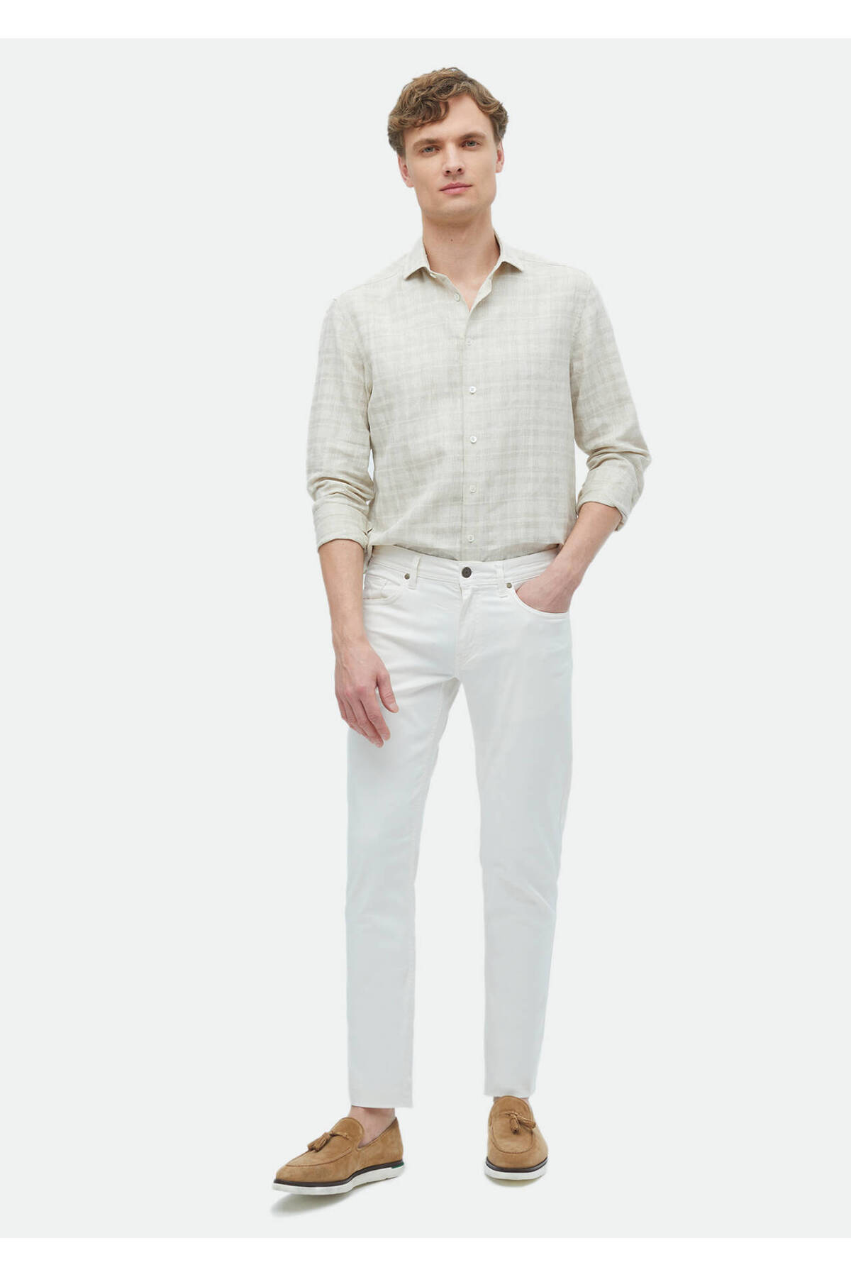 رمزی پیراهن 100% کتانی گاه به گاه بافته شده منظم با چاپ بژ