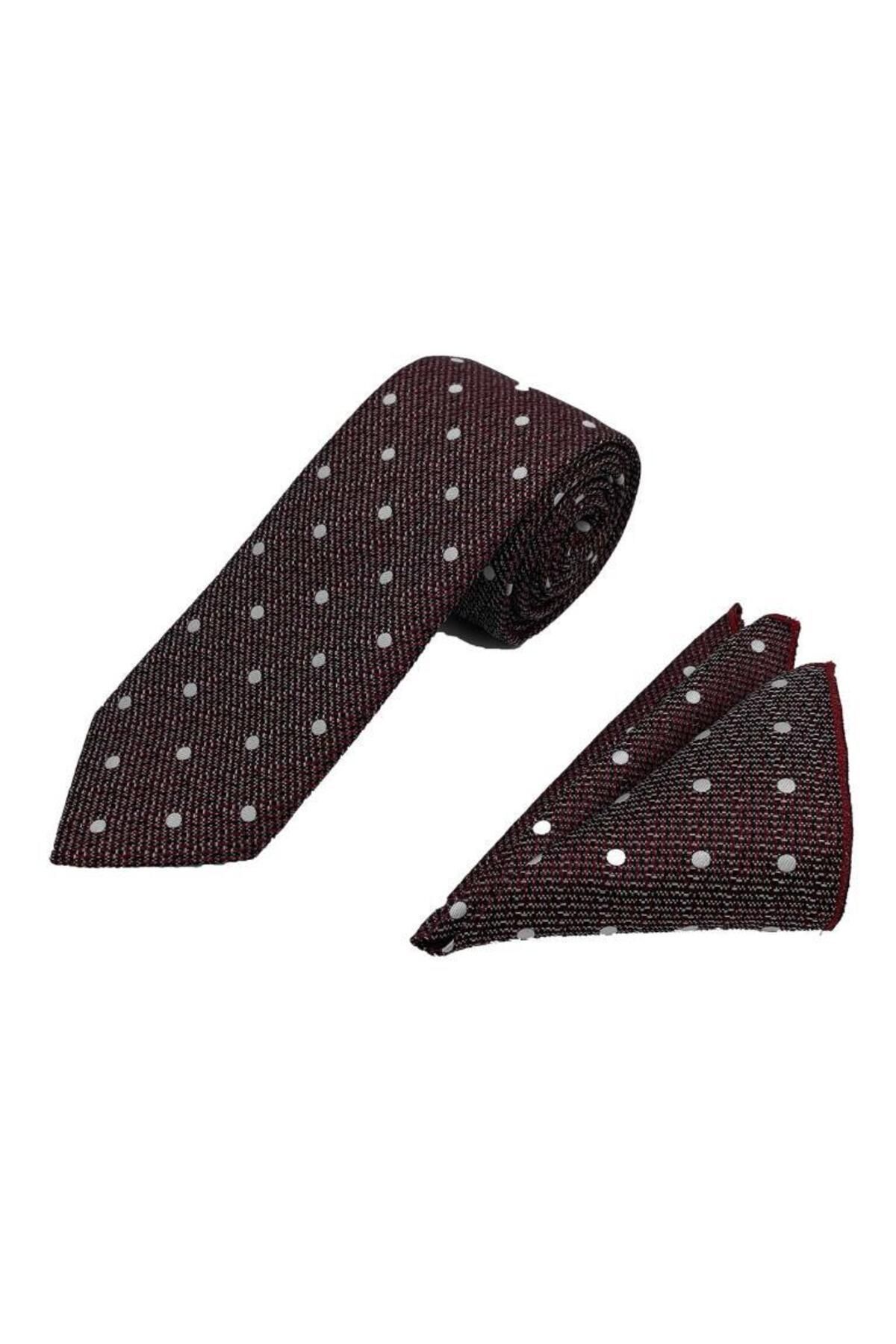 ست طرح کراوات و دستمال مشکی، بورگوندی، سفید مردانه خال خالی | Brianze B00310