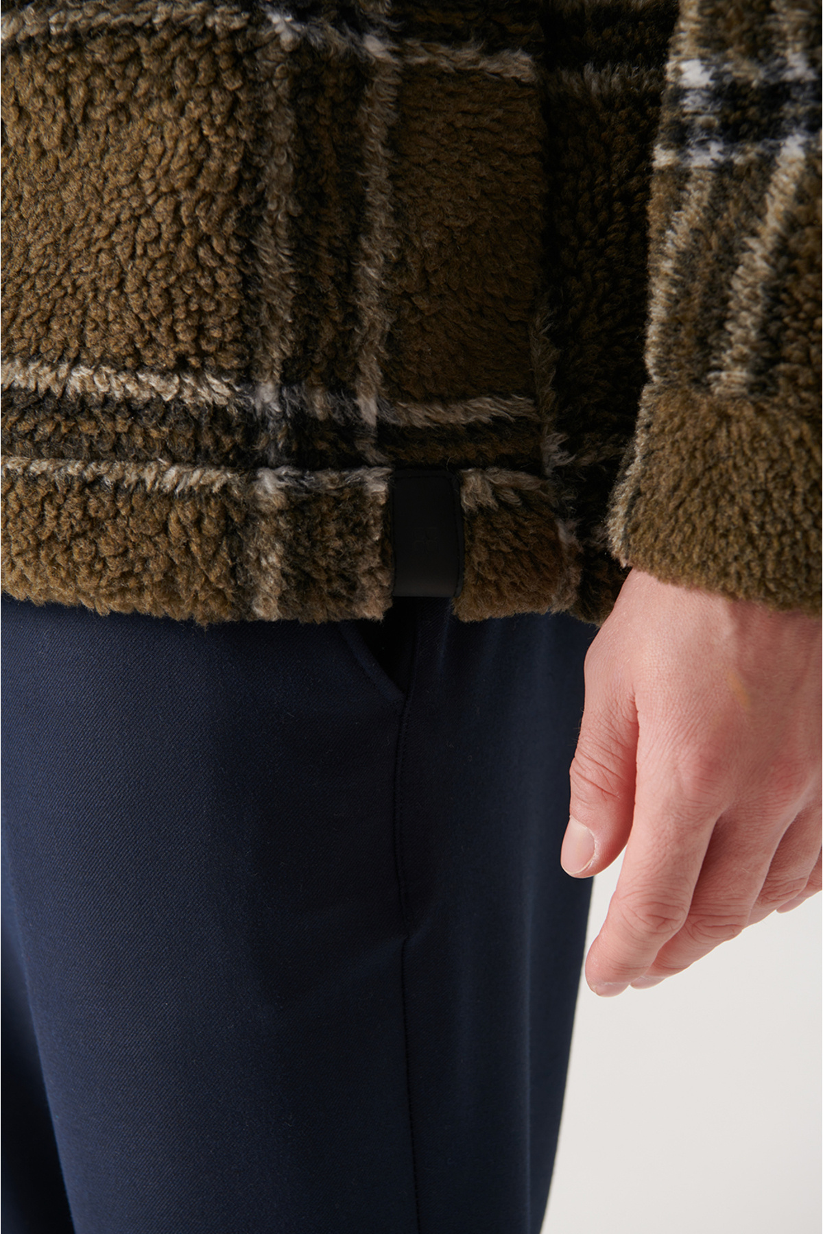 آوا خز مصنوعی یقه کلاسیک خاکی مردانه داخل کاپشن مخملی جیر مصنوعی A22Y6047