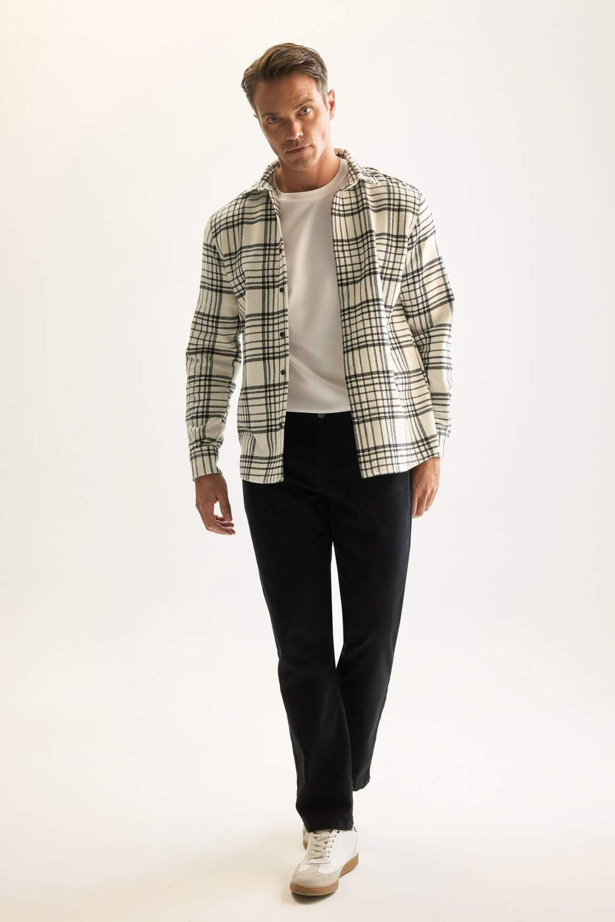 دفاکتو پیراهن آستین بلند فلانل چوگان یقه چوگان رگولار D7188AXNS