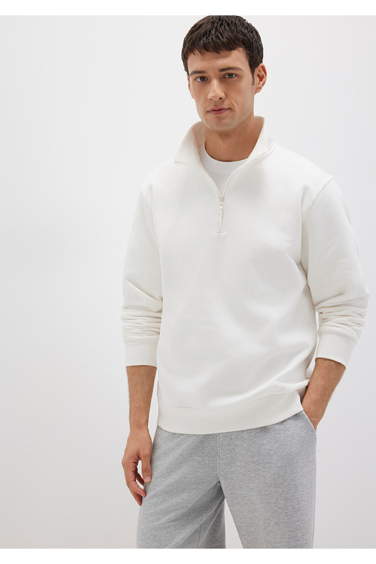 ماوی تی شرت سفید آستین بلند با تناسب معمولی / برش معمولی 0612510-70057