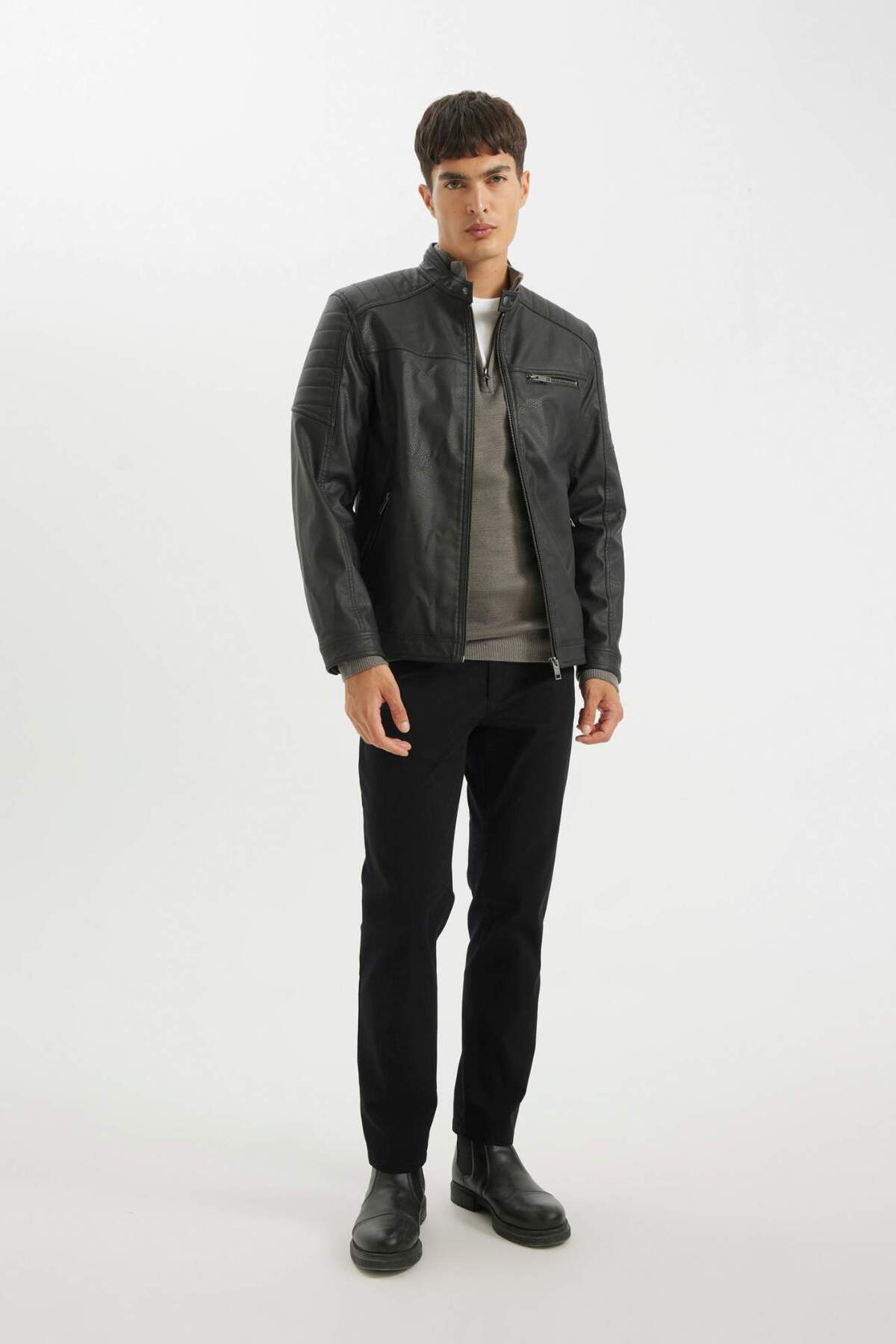 دفاکتو کت چرم مصنوعی اسلیم فیت کت باریک یقه زیپ دار جیب دار فصلی D4918AX24AU