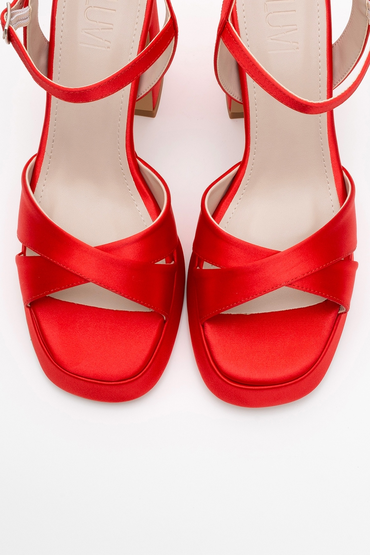لوی شوز کفش پاشنه دار سکوی زنانه ساتن قرمز LELLO