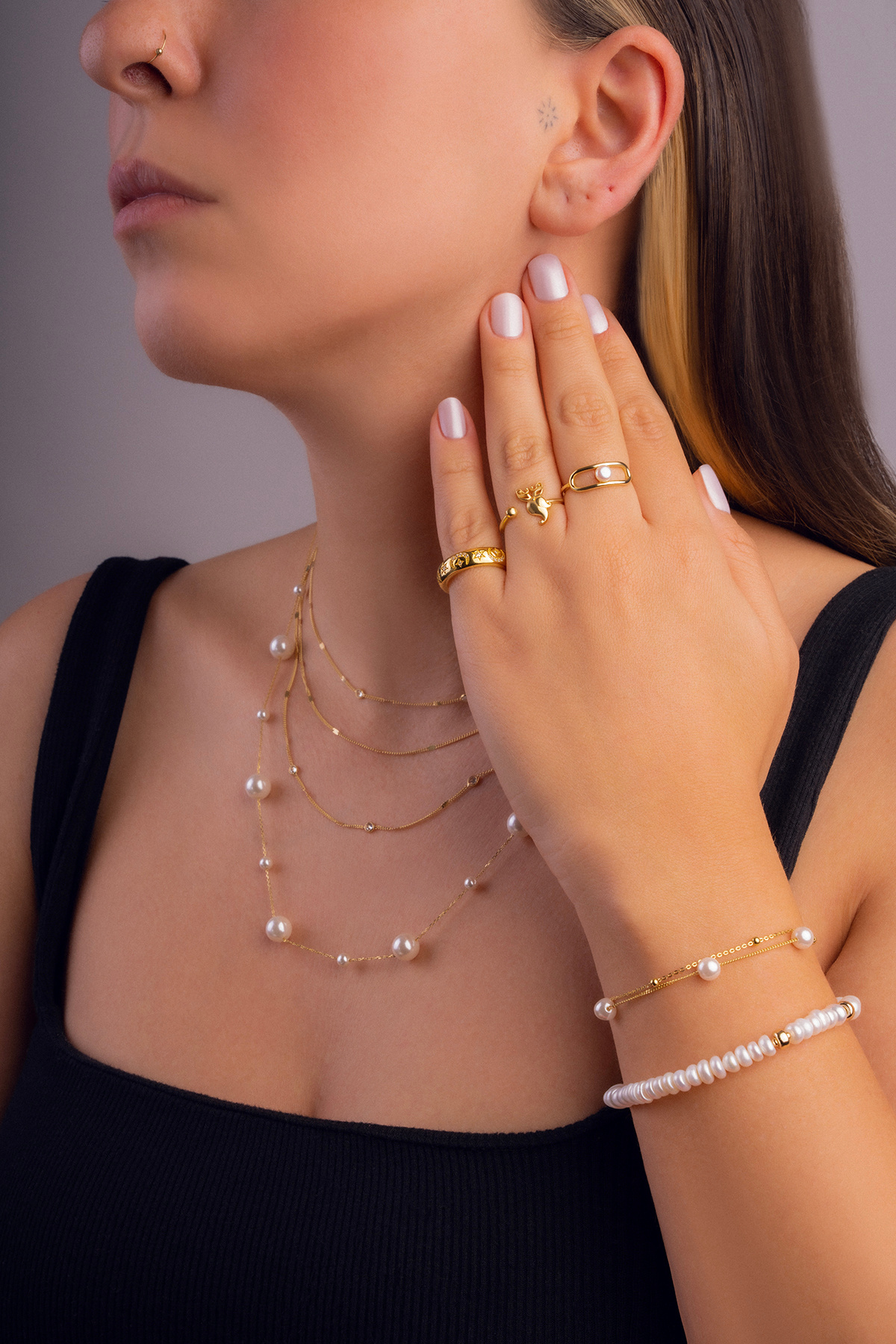 هال هال نقره 27 سانتی متری روکش طلای زرد 18 عیار با سنگ های فیروزه و مروارید سو شیک زنانه | So Chic 1121551344