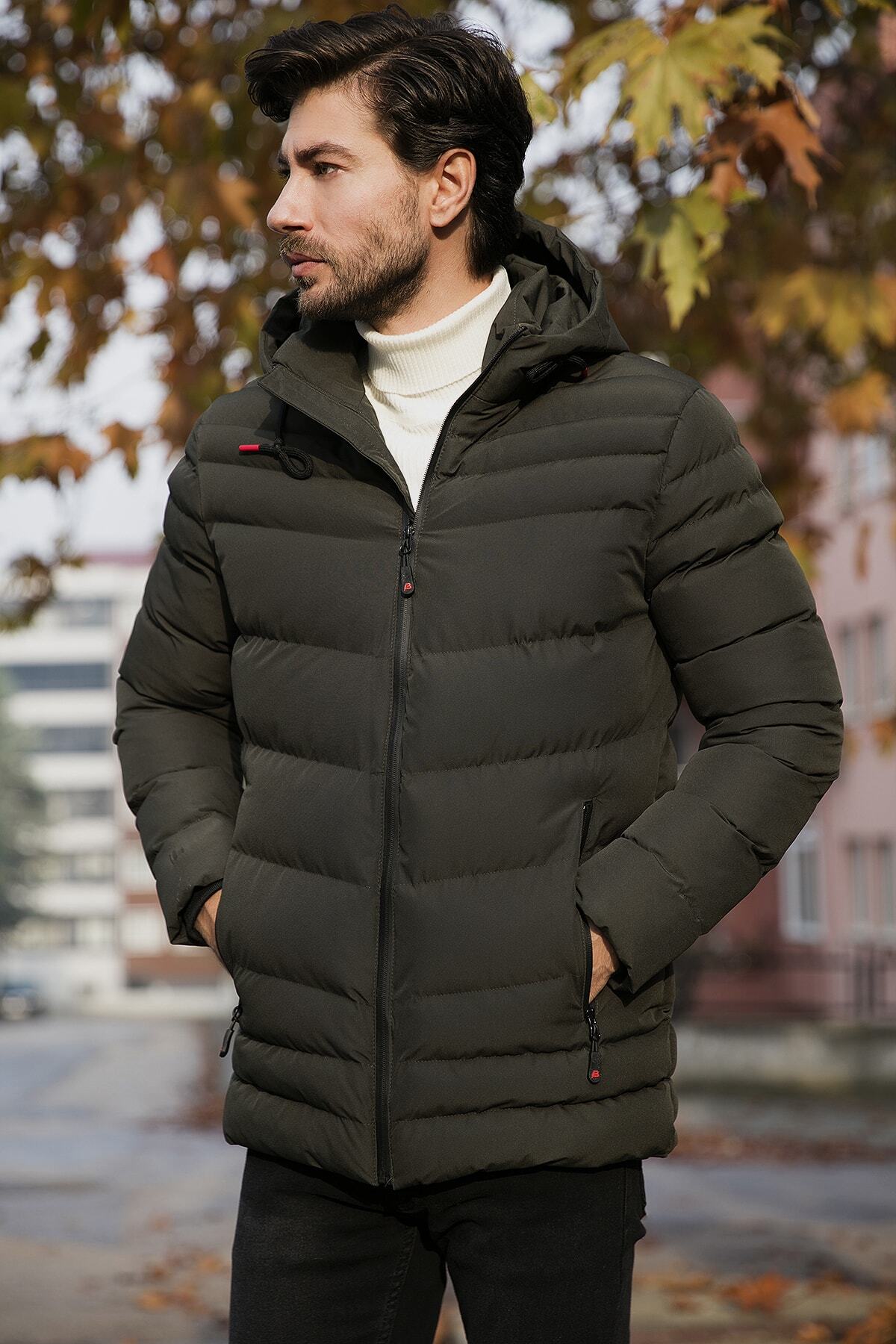 بوراتی کاپشن پف دار کلاهدار ضد آب اسلیم فیت کاپشن مردانه 649005 ضد سرما و باد