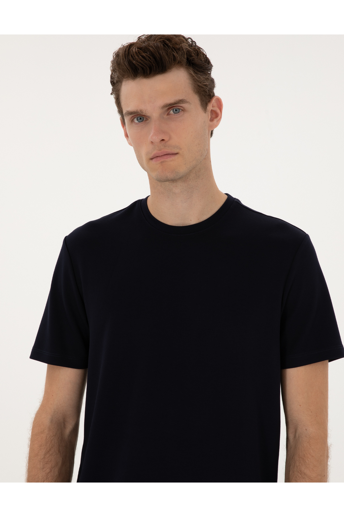 پیر کاردین تی شرت پایه یقه خدمه با بافت ضخیم آبی معمولی 50308037-VR033