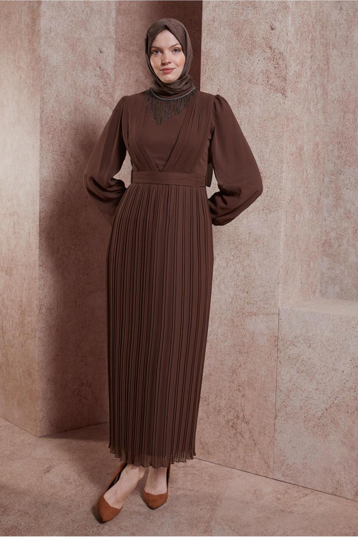 لباس کوکتل زنانه آلوینا آستین چین دار راسته | Alvina 24YABL0050411