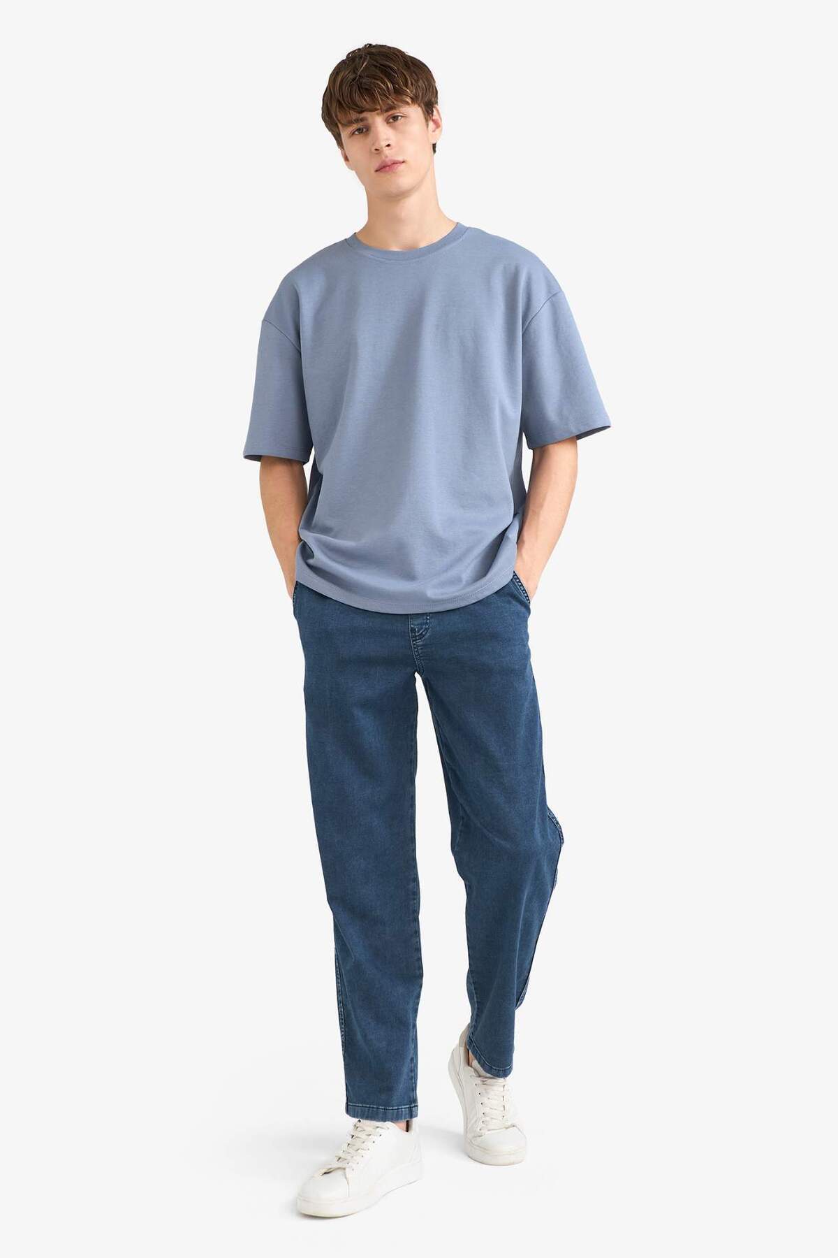 دفاکتو تی شرت آستین کوتاه ساده ساده با یقه سنگین پارچه ای با الگوی بزرگ خدمه X3926AZ25AU