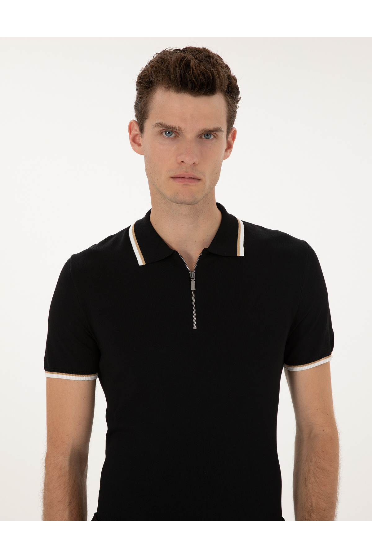 پیر کاردین ژاکت بافتنی با زیپ یقه پولو باریک مشکی 50315745-VR046