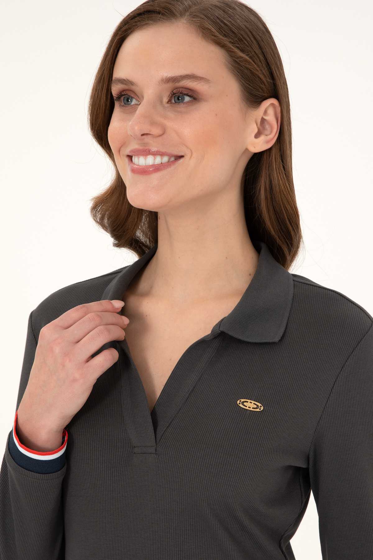 یو اس پولو لباس بافتنی قد کوتاه یقه پولو آنتراسیت زنانه 50299041-VR006