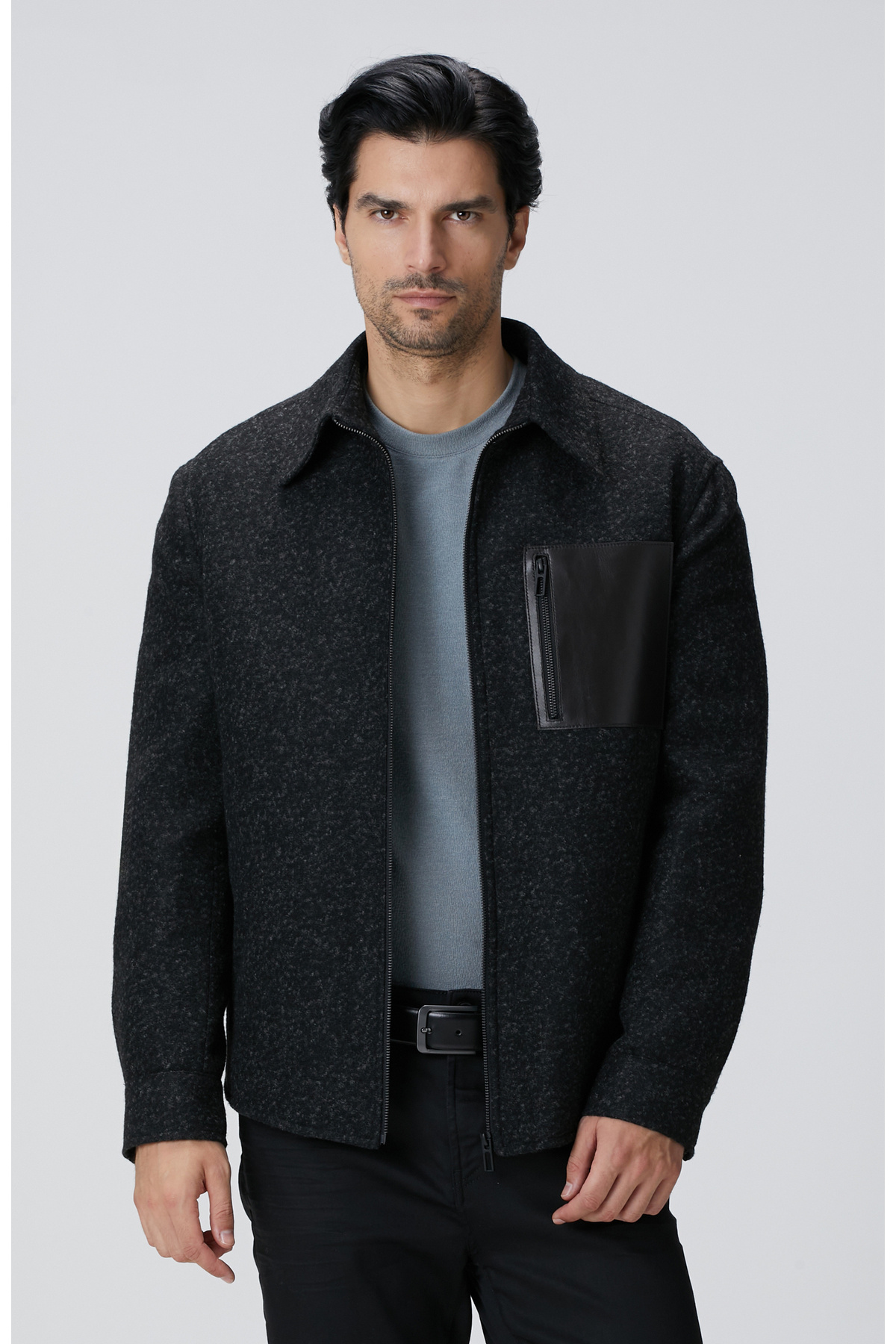 نتورک پالتو جیب‌دار طرح چرم ترکیبی مشکی و پشمی
