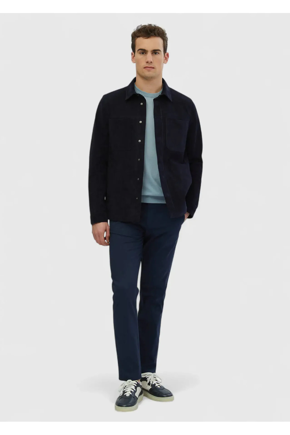 رمزی کاپشن چرمی معمولی یقه پیراهن معمولی آبی سرمه ای