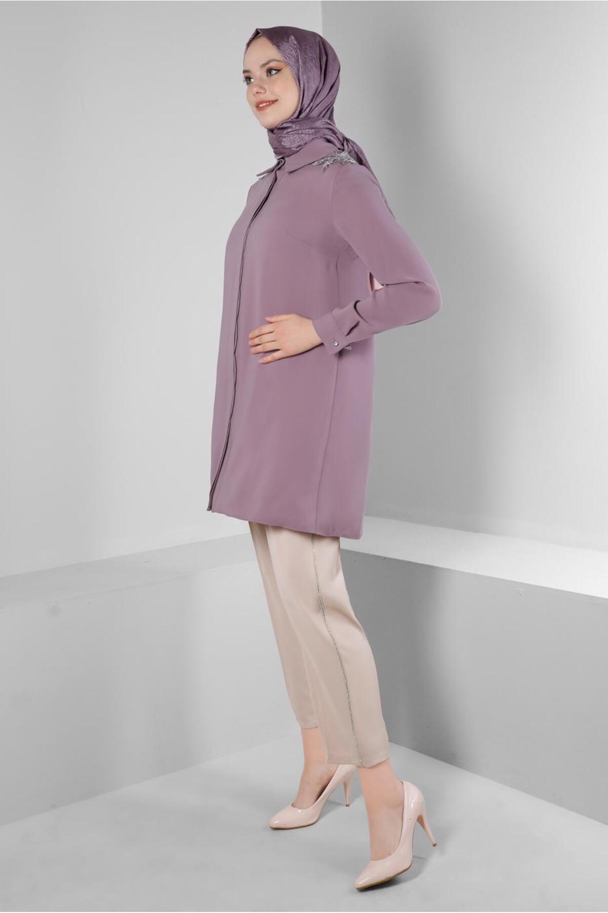 آلوینا تونیک دکمه مخفی سنگ دوزی شده با جزئیات کد ۴۳۵۰۴