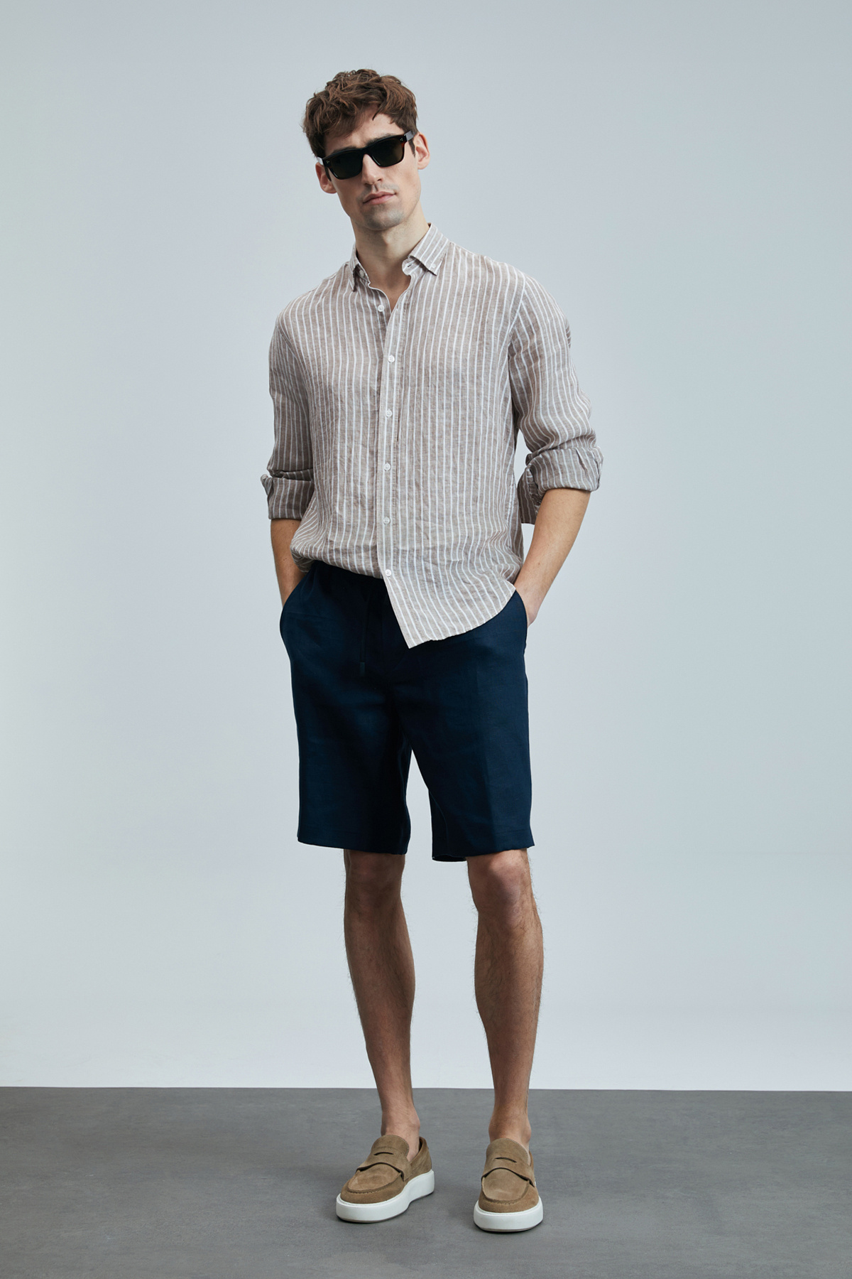 لوفیان پیراهن مردانه کتان آلفرد، رنگ بژ، سایز معمولی