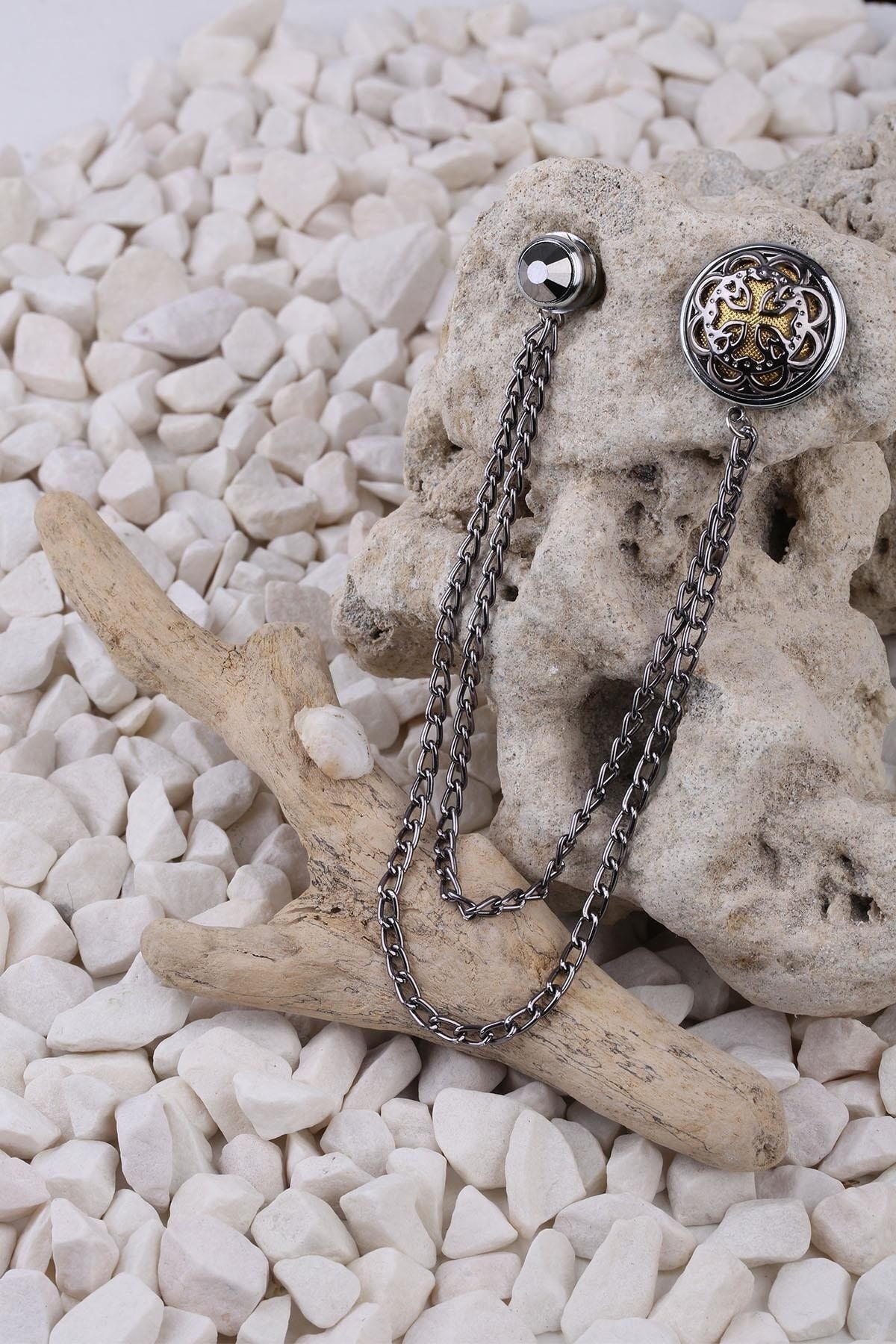 سنجاق سینه زنجیری طرح گورخری از جنس سنگ هماتیت مدل YI216 مردانه Zebra | La Pescara KRVT8690001118673