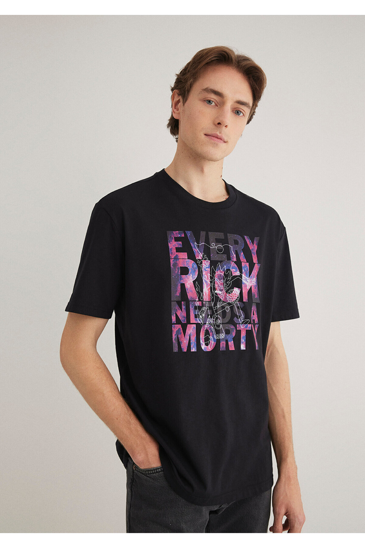 ماوی تی شرت مشکی چاپ ریک اند مورتی Loose Fit / Loose Comfortable Cut 0611683-900