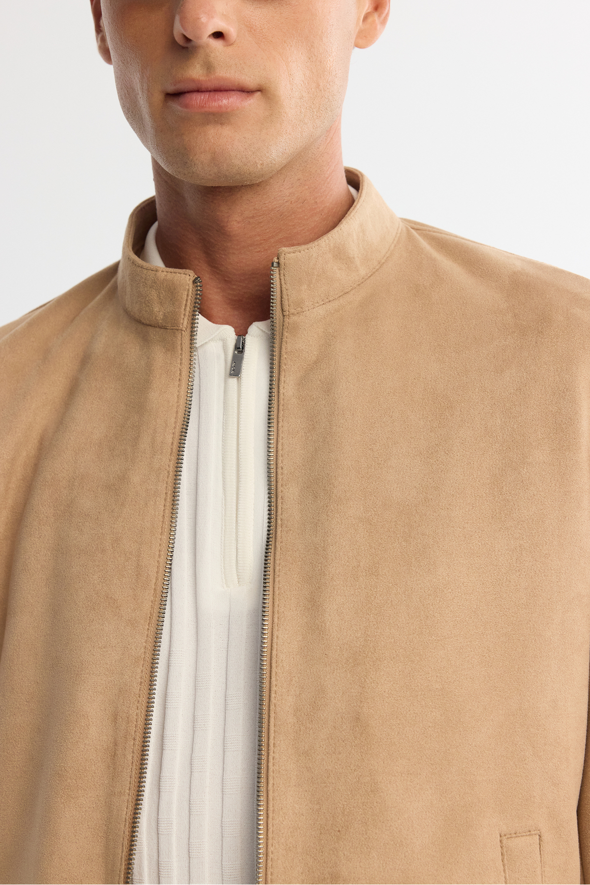 آوا کاپشن نازک بافت جیر یقه ایستاده بژ مردانه Comfort Fit B006002