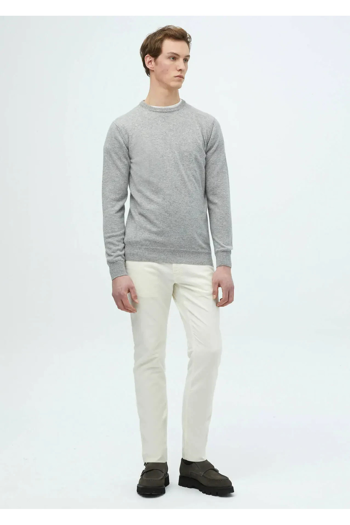 رمزی ژاکت یقه خاکستری ساده بافتنی 100% کشمیری