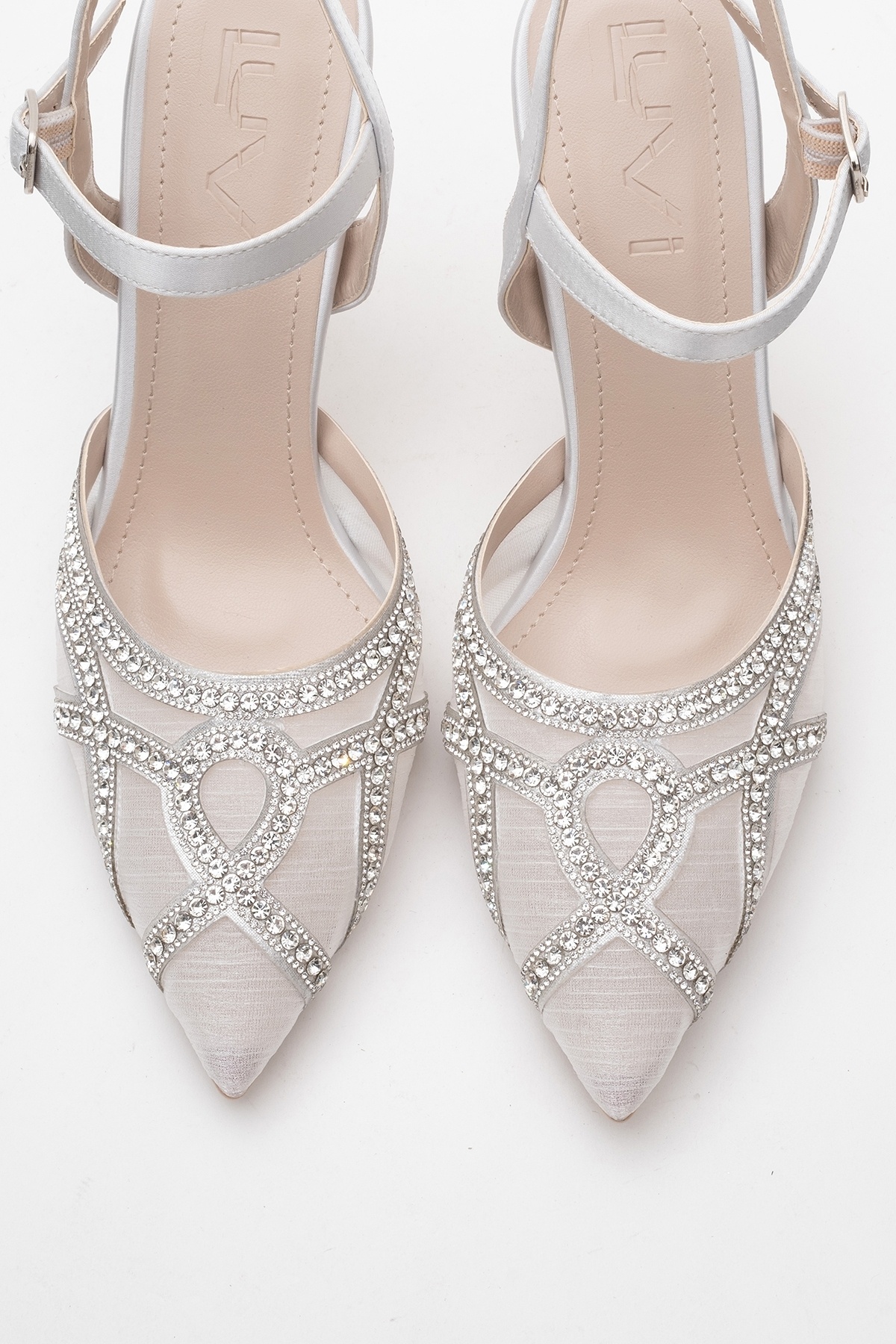 لویی شوز کفش مجلسی زنانه سنگدار ساتن نقره‌ای VOLBY