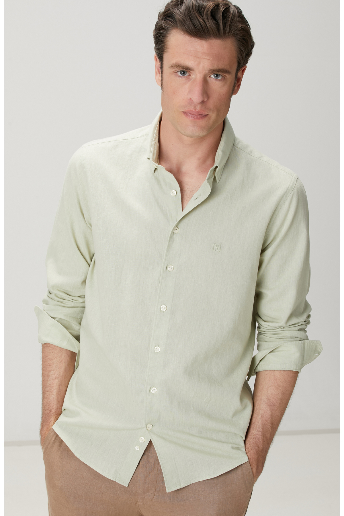 جک اند جونز شورت چینو با تناسب باریک مردانه سبز JPSTACE JJSUMMER LINEN BLEND SHORT