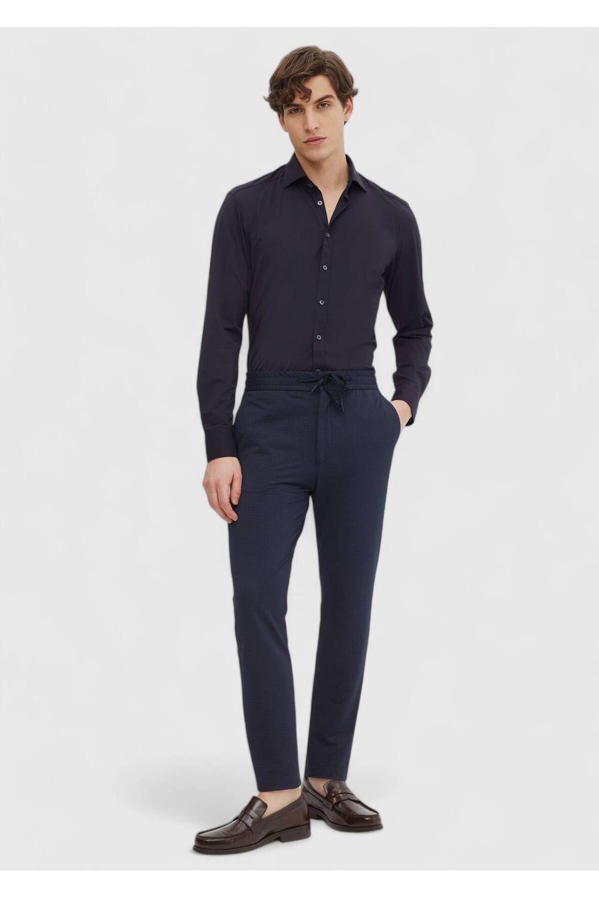 رمزی پیراهن کلاسیک بافته شده معمولی ساده آبی سرمه ای