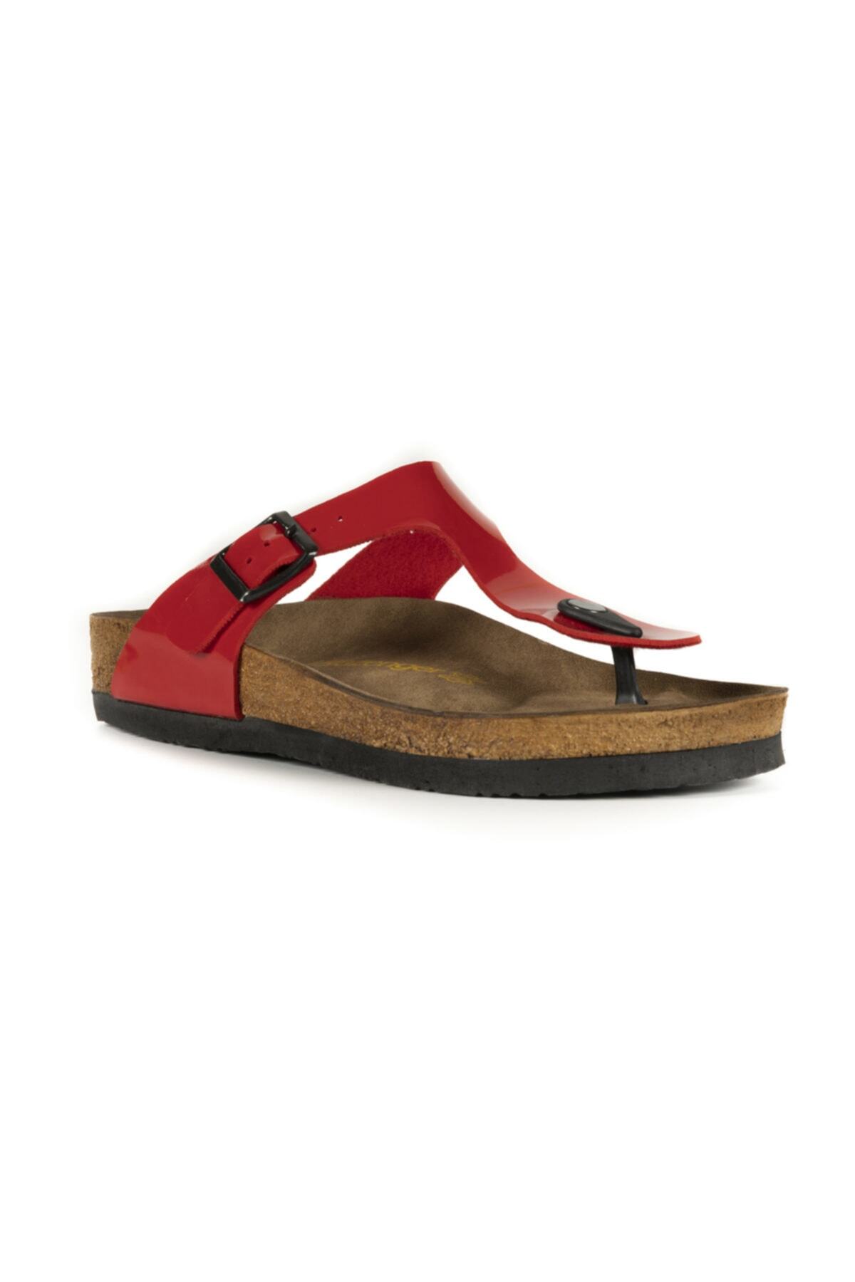 اسلازنگر دمپایی لاانگشتی زنانه LUKE مدل ساحلی قرمز چرم ورنی