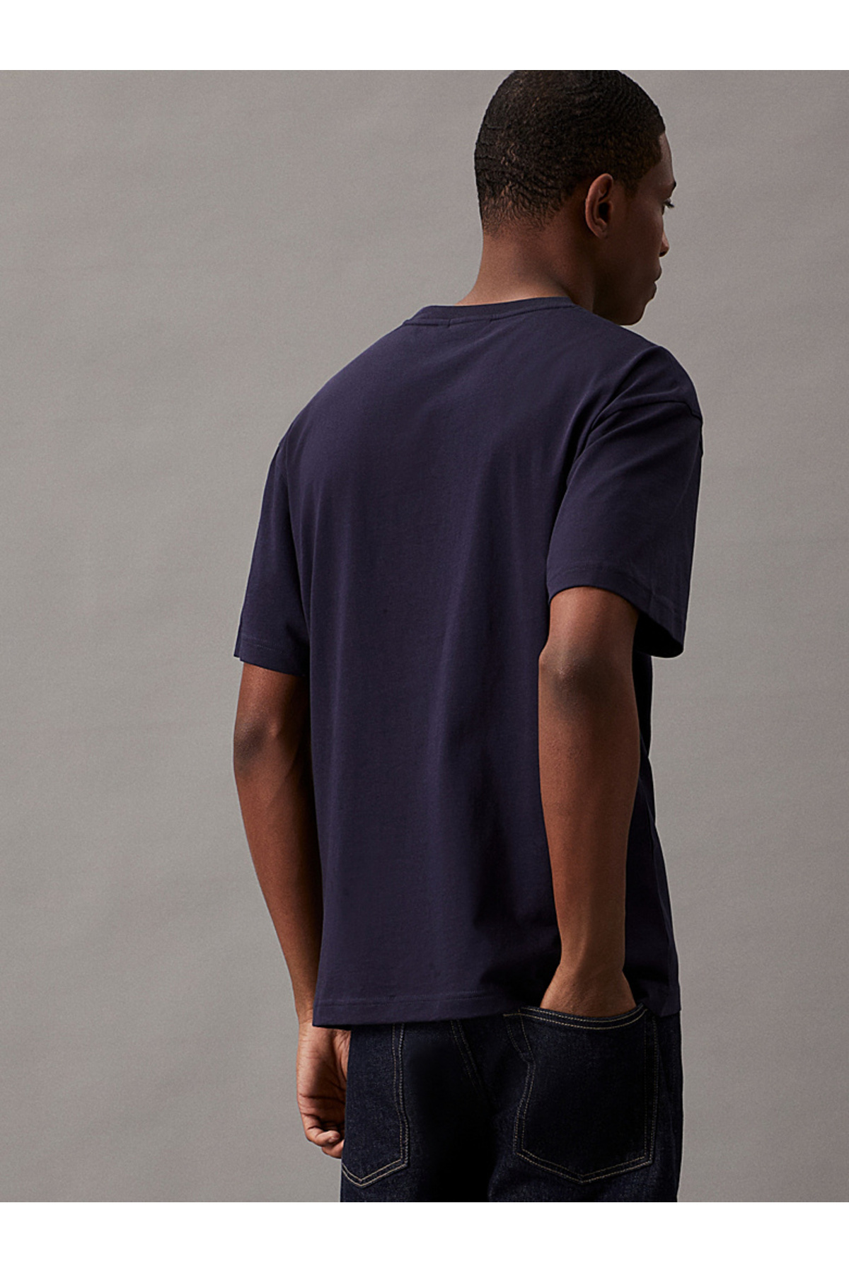 کالوین کلین تی شرت مردانه آستین کوتاه یقه گرد مردانه آبی سرمه ای با طرح لوگو در پشت LV04RAB812-RL