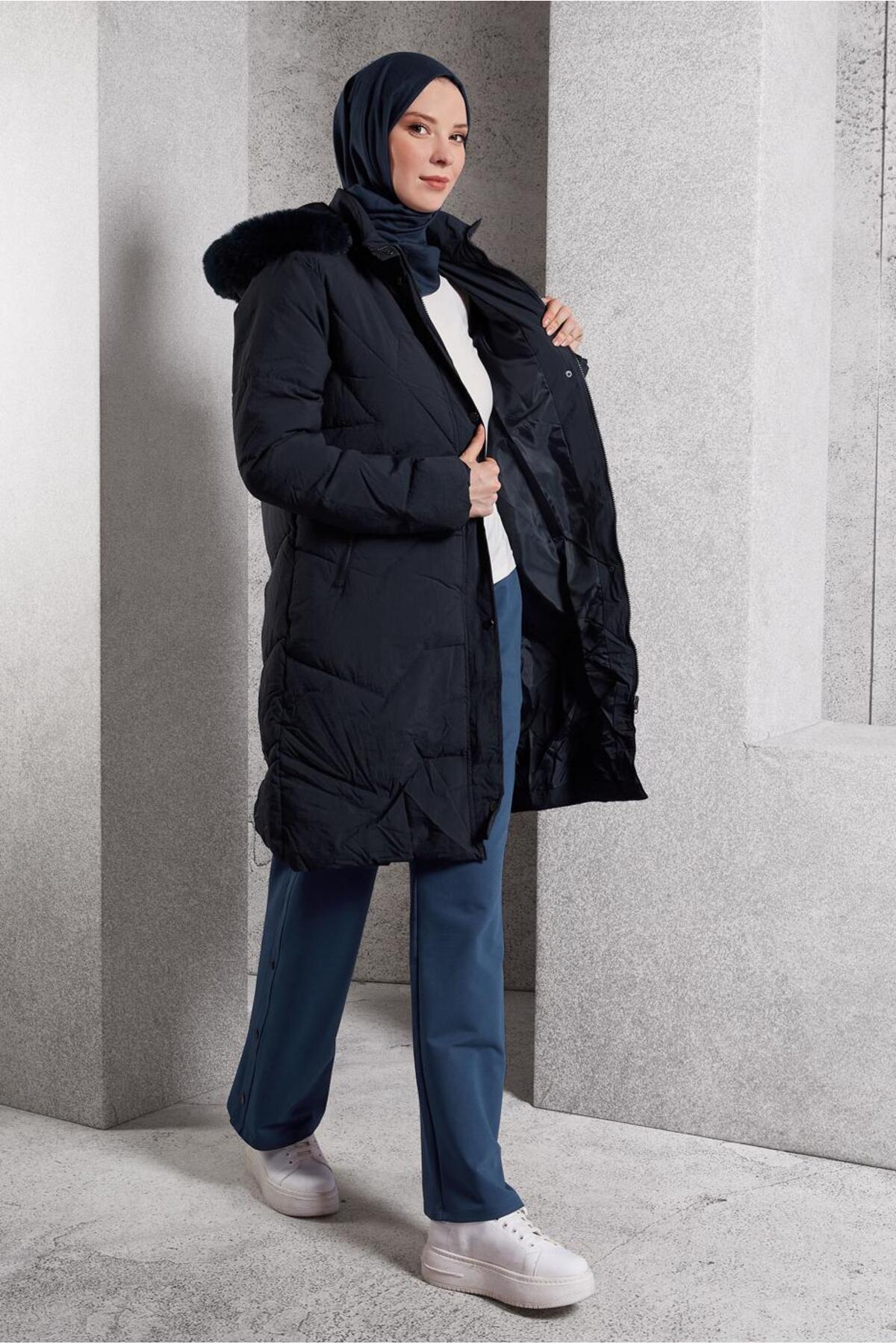 آلوینا کت پفی کلاه دار کمر کشی ۹۰۳۳۲