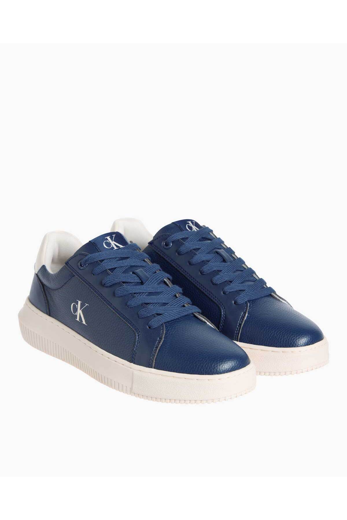 کالوین کلین کفش ورزشی مردانه 100% چرمی زیره صاف CK جیر با جزئیات کتانی آبی دریایی YM0YM01300-DW4
