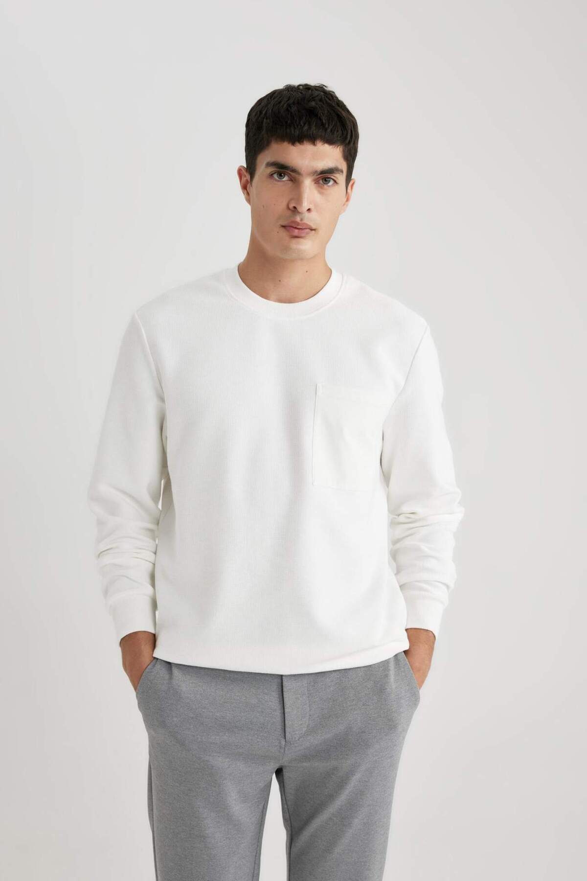 دفاکتو سویشرت جیبی بافت دار یقه خدمه با تناسب رگولار 100% پنبه B6497AX24SP