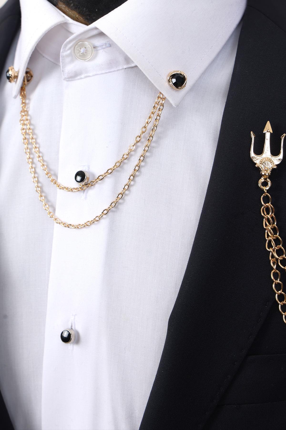 ست سنجاق یقه یقه شمشیر پوزیدون طلایی و ست یقه پیراهن سنگی