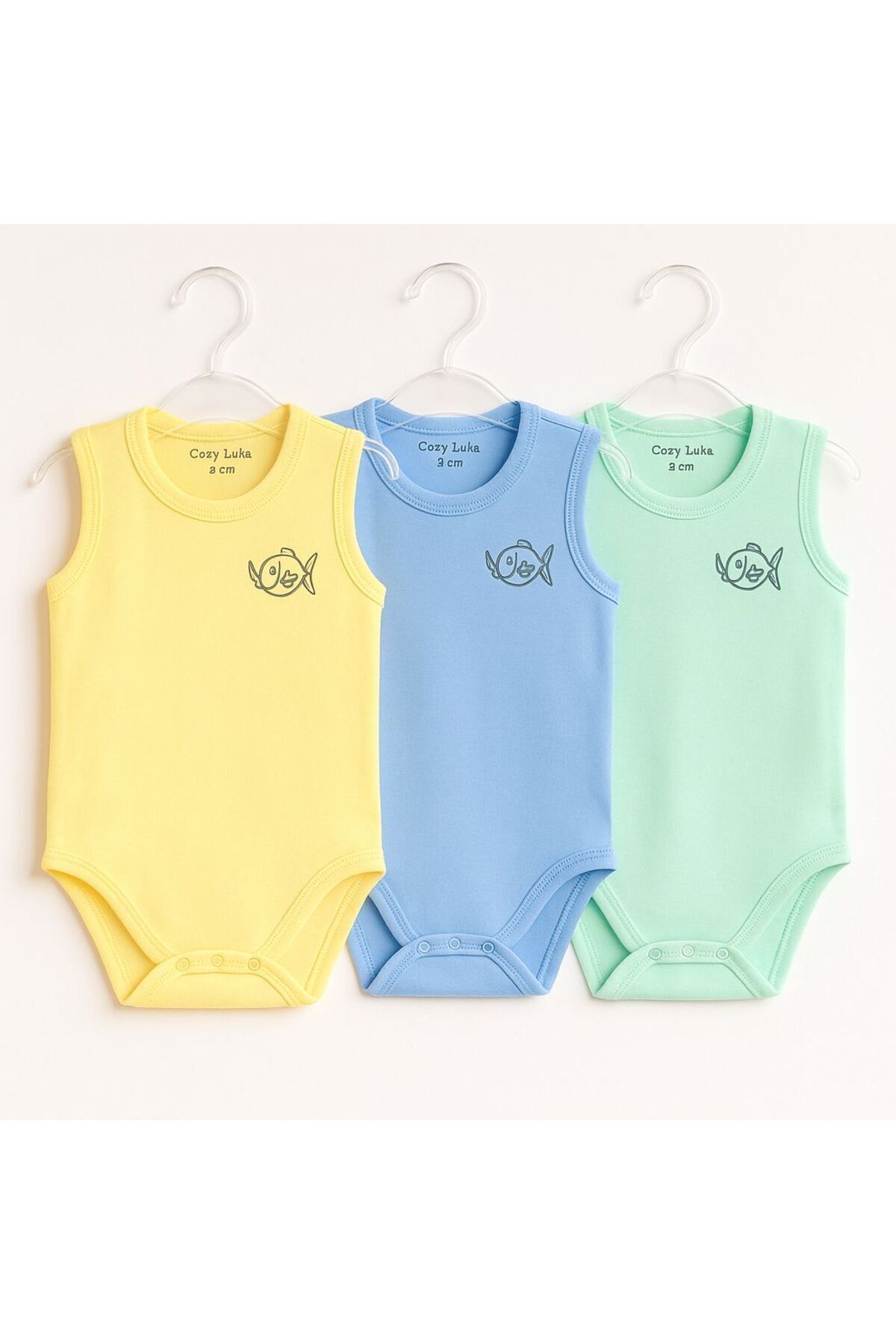 بادی کرم ساده، ۱۰۰٪ پنبه، بدون آستین، ۳ تکه