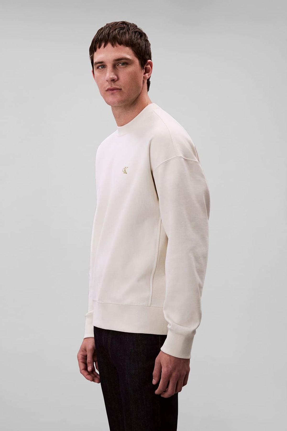 کالوین کلین سویشرت مردانه یقه دوزی با لوگو - کرم