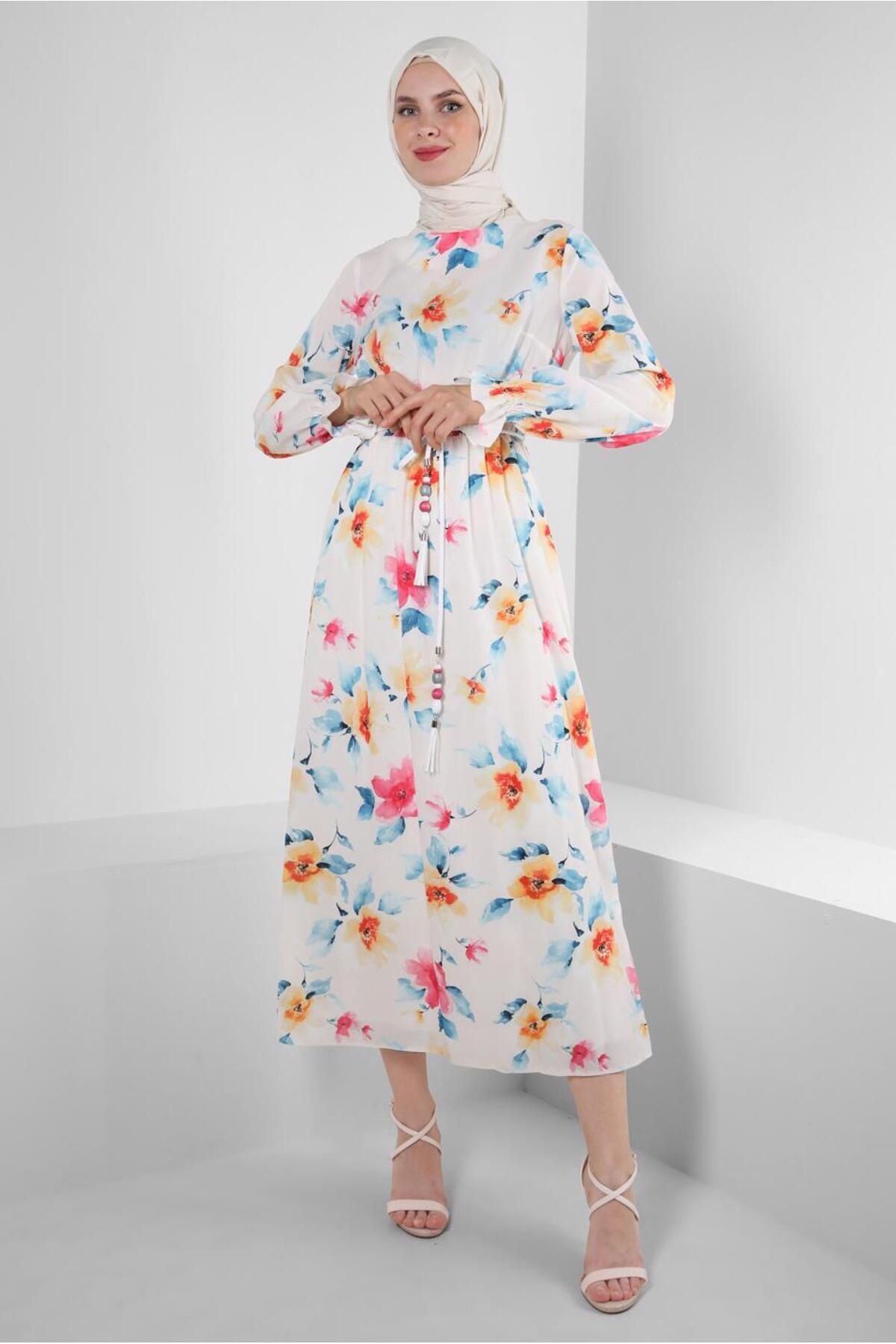 آلوینا لباس طرح گلدار با کمربند الاستیک 43822