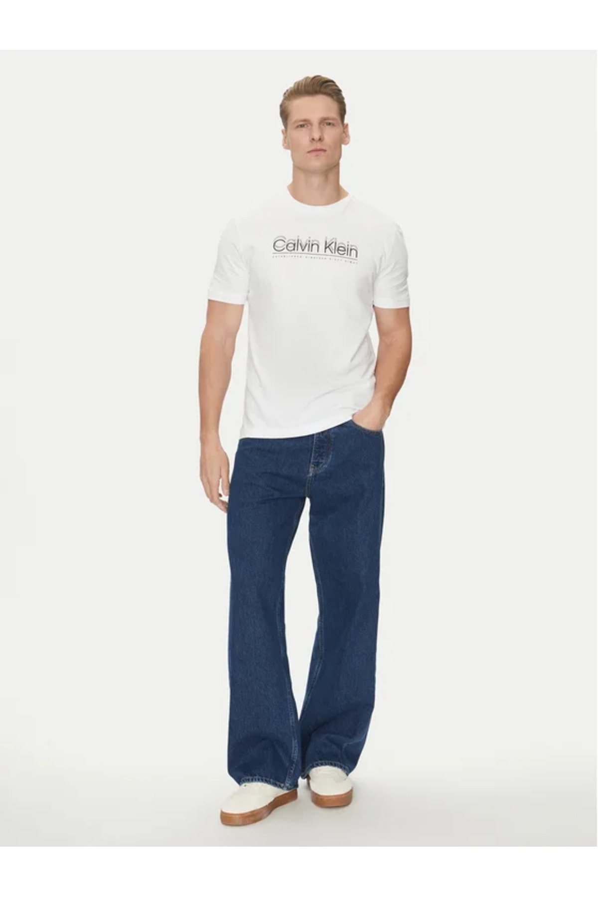 کالوین کلین تیشرت مردانه آستین کوتاه نخی یقه خدمه کالوین کلاین، تی شرت سفید با جزئیات K10K114149-YAF