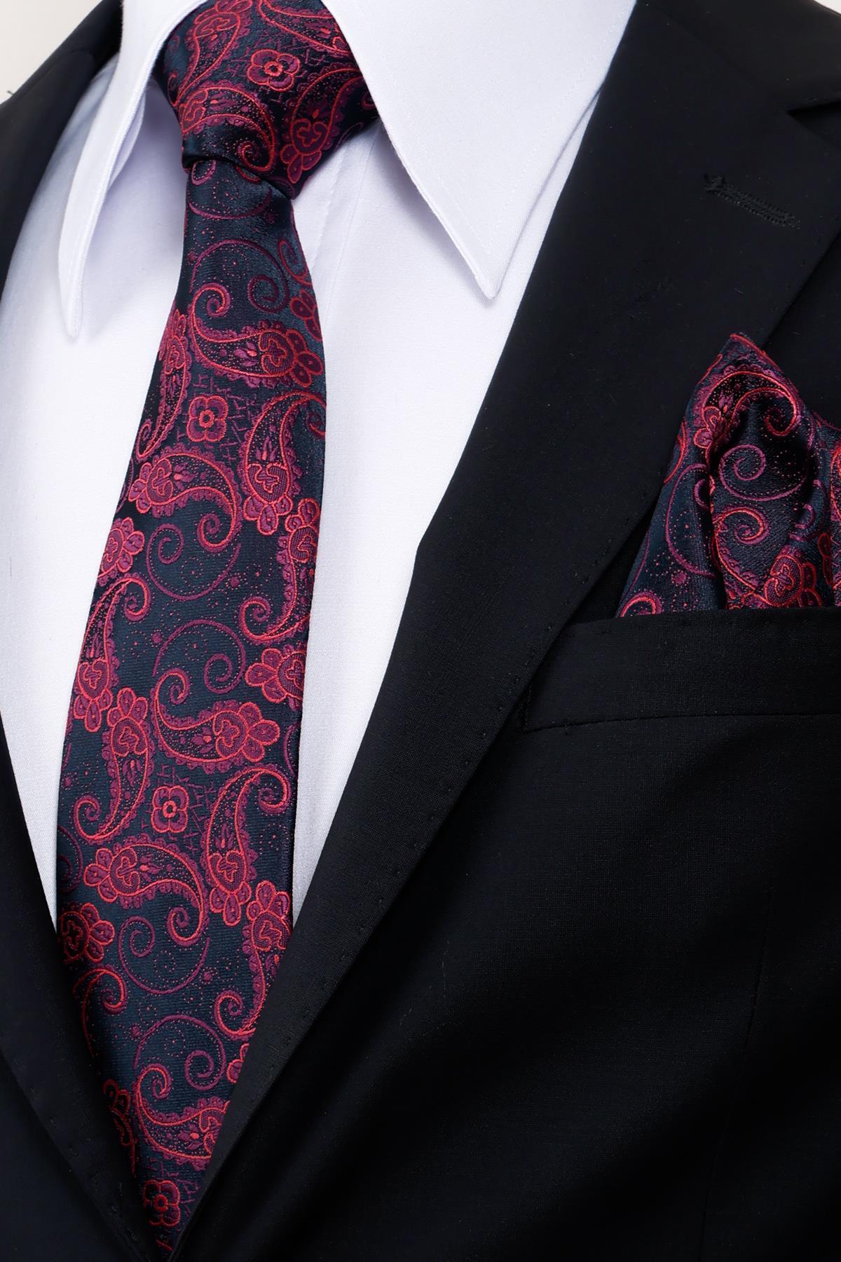 کراوات جیبی پهن کلاسیک دستساز طرح شال آبی قهوهای ۸ سانتیمتری مردانه طرح شال | Esgue ESG115KRM1163