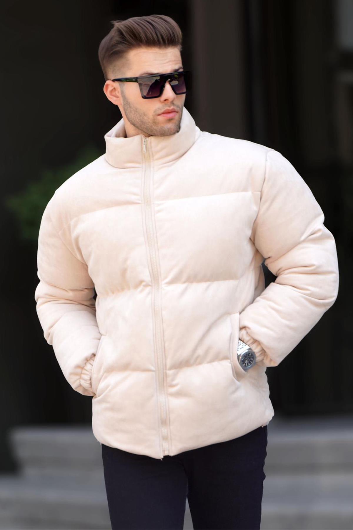 مدمکست کاپشن پفکی مردانه رنگ سنگی Nubuck 6802