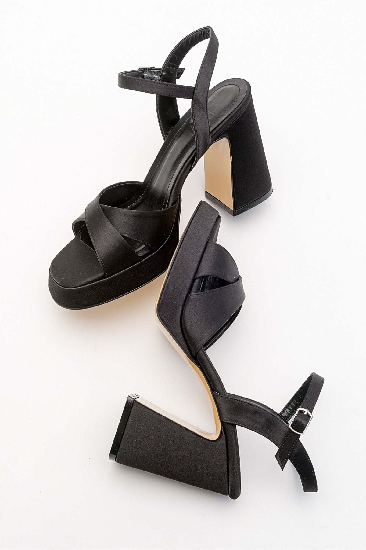 لوی شوز کفش پاشنه بلند زنانه ساتن مشکی HENRY