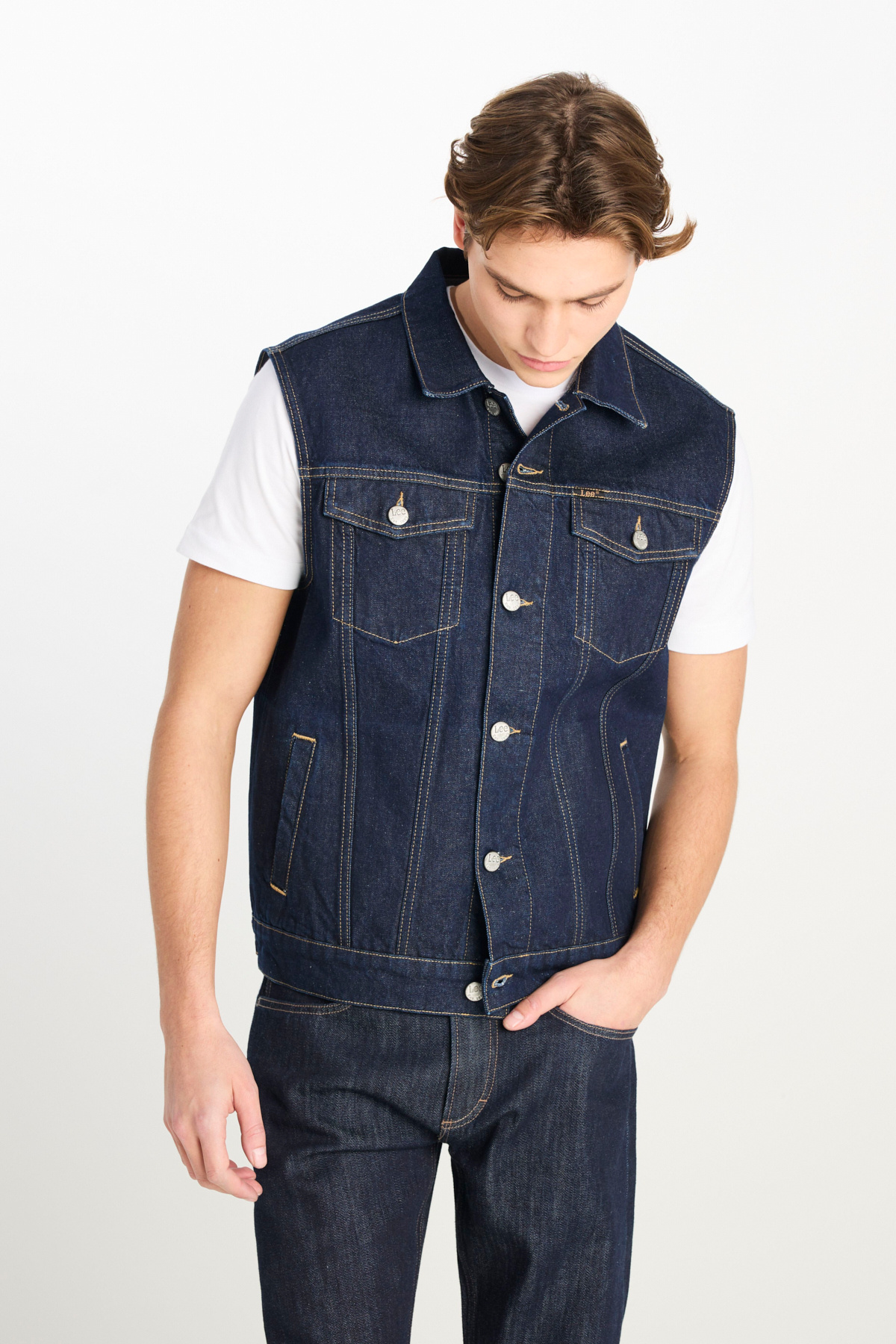 لی جلیقه جین آبی سرمه‌ای 100% پنبه‌ای با تناسب راحت