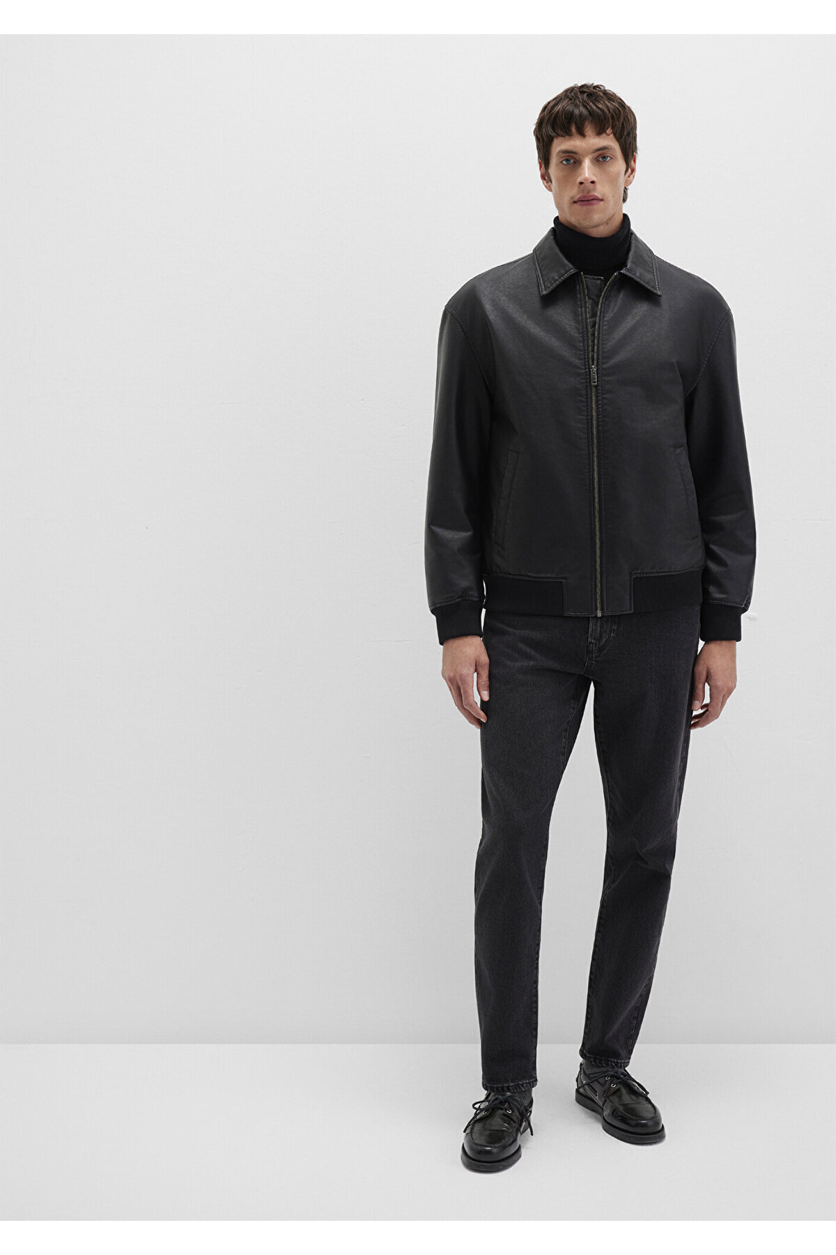 ماوی کت چرم مصنوعی مشکی باریک / برش باریک 0110548-71379